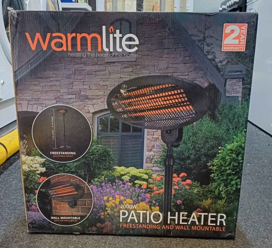 Warmlite WL42009 Quartz Portable Patio Heater with 3 Heat Settings, 2000W, Black