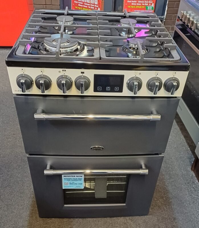 BEL 60cm duel fuel mini range Cooker in charcoal cream