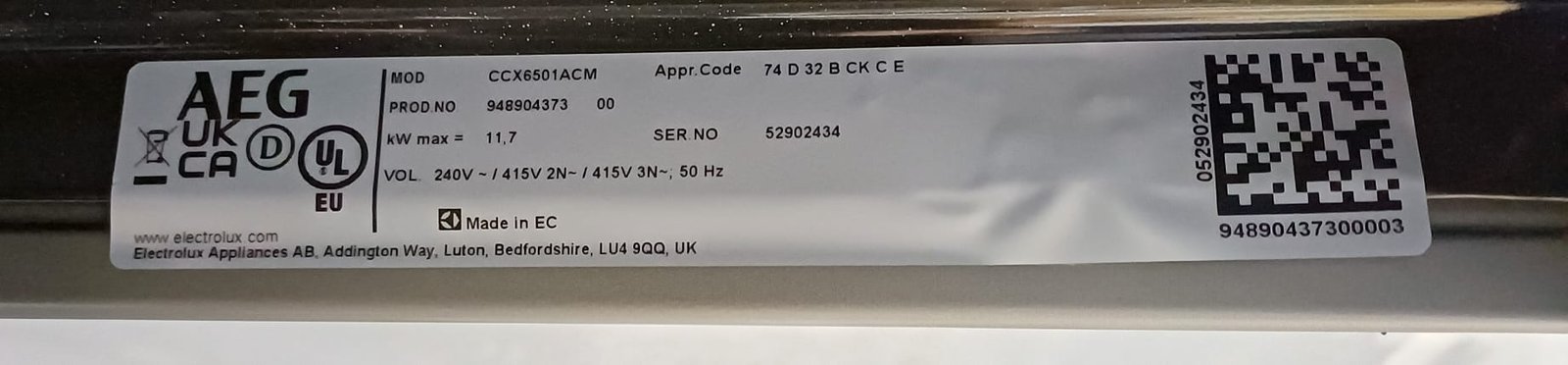 | Box contents | AEG 5000 Series SurroundCook Cooker • Ceramic hob • Instruction manual • Energy label |