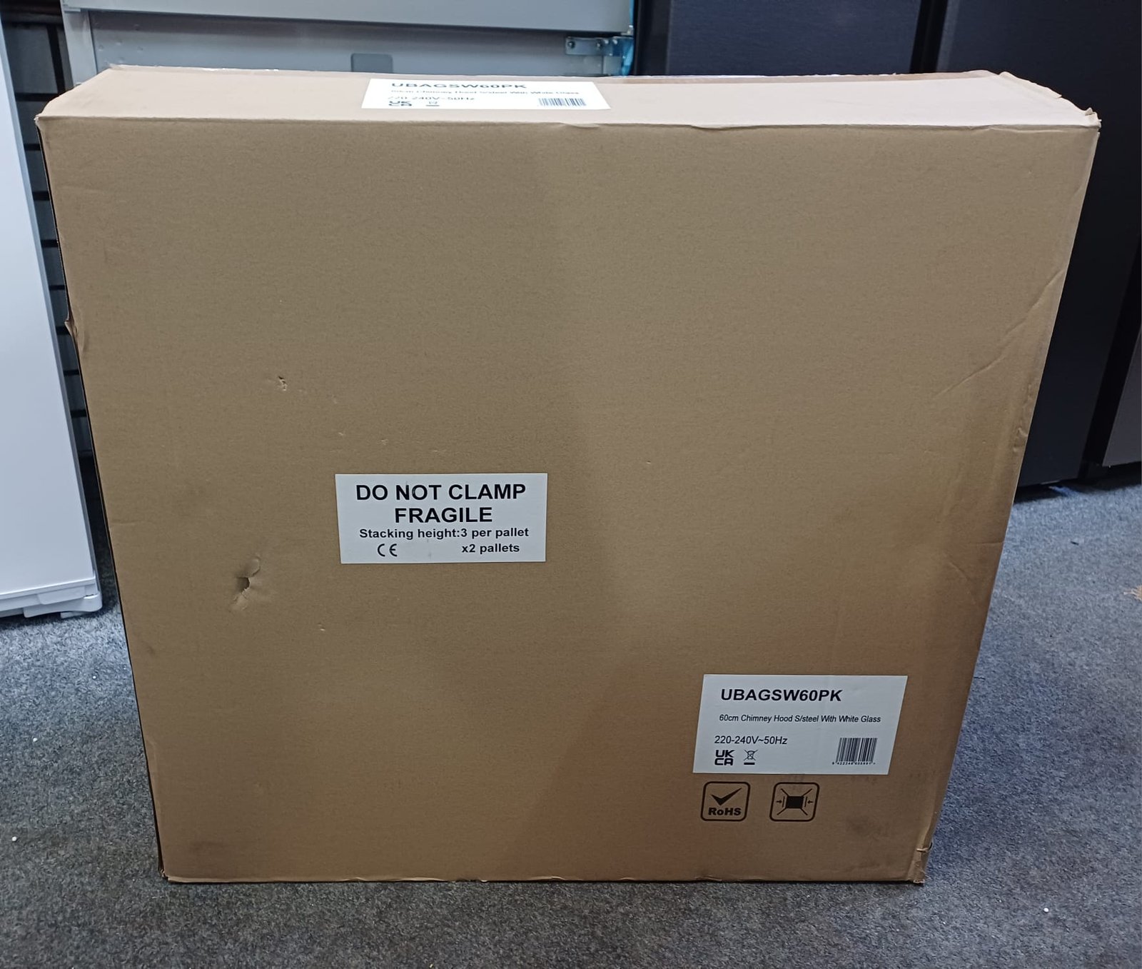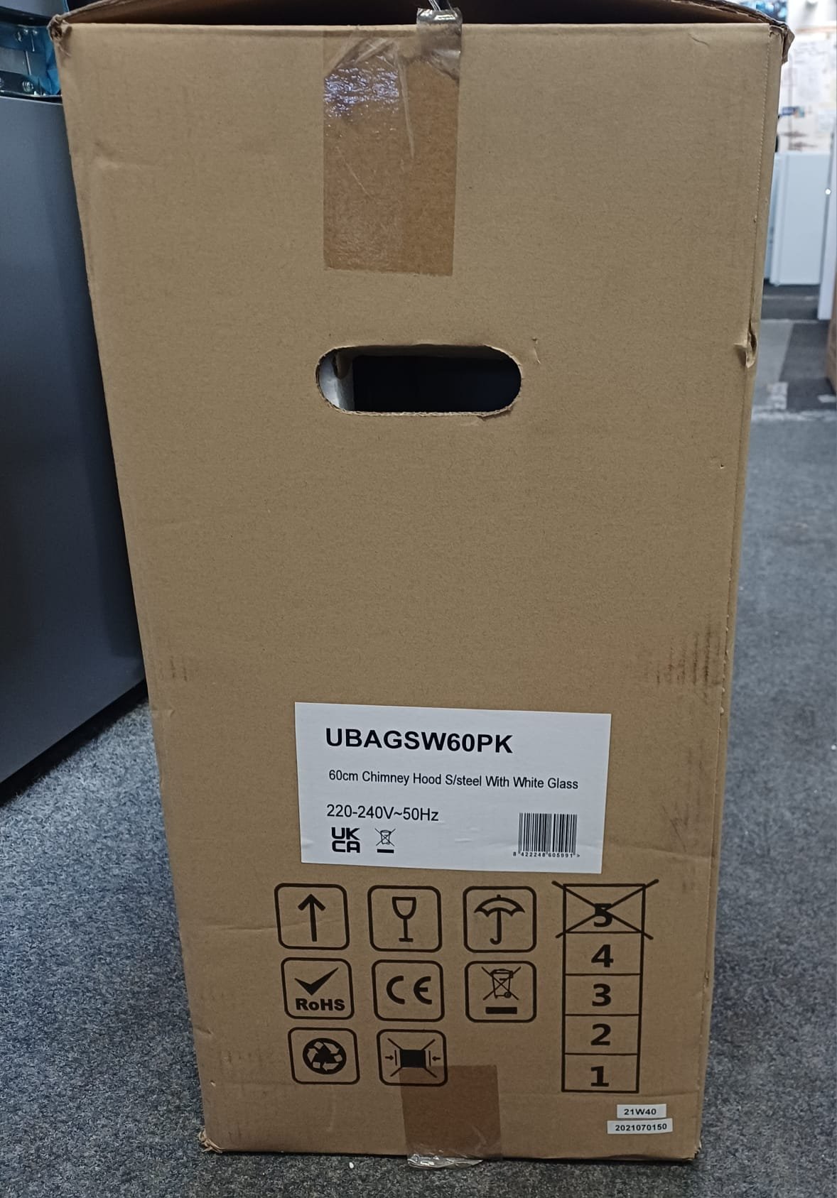 Apelson UBAGSW60PK 60cm Angled White Glass Cooker Hood