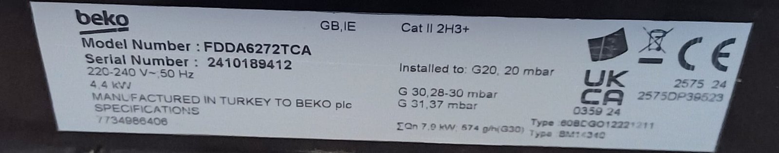 Beko FDDA6272TCA Freestanding Gas Cooker