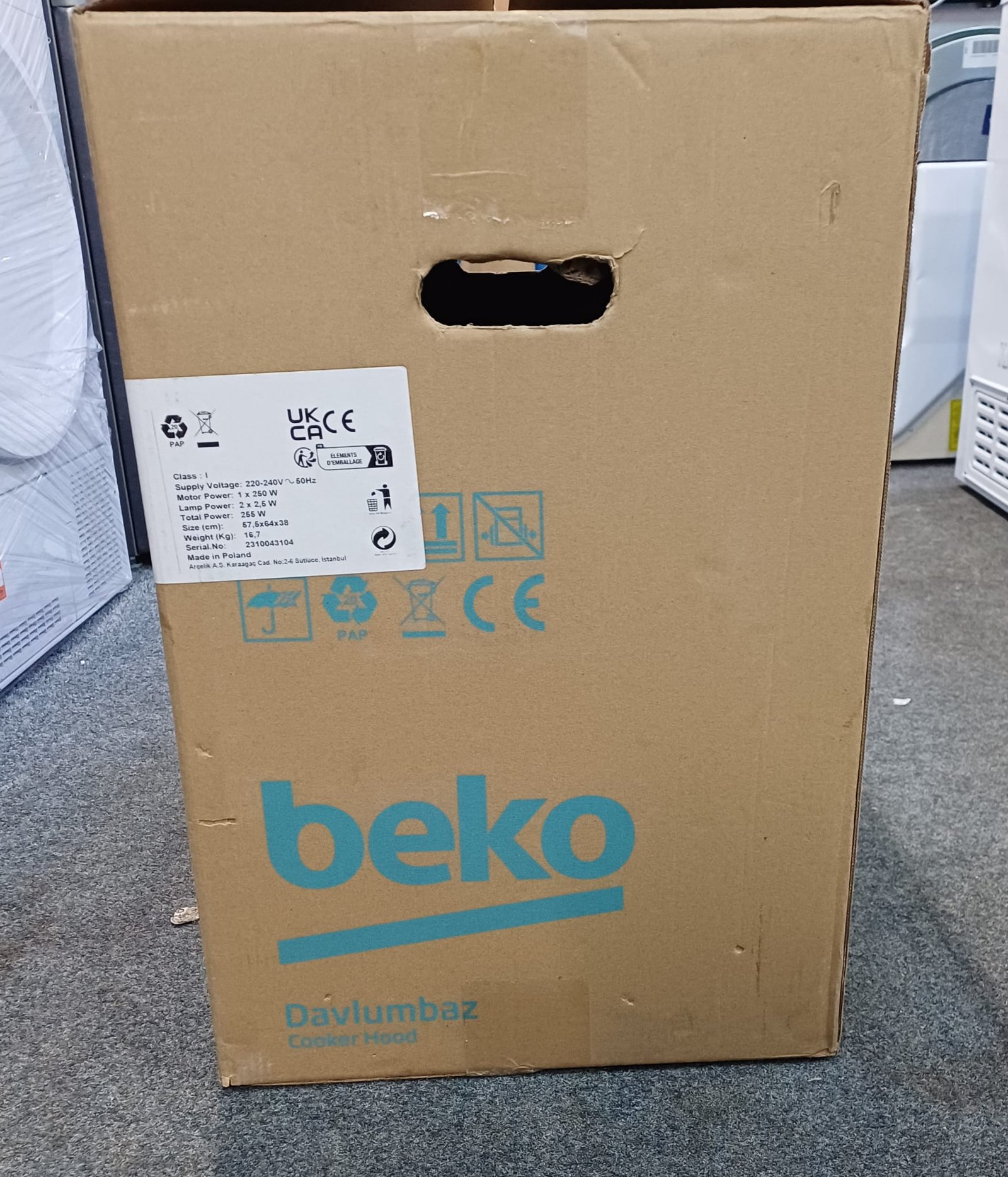 | Box contents | Beko HCF61620X Chimney Cooker Hood • Product fiche • User manual • Energy label • Barcode label |