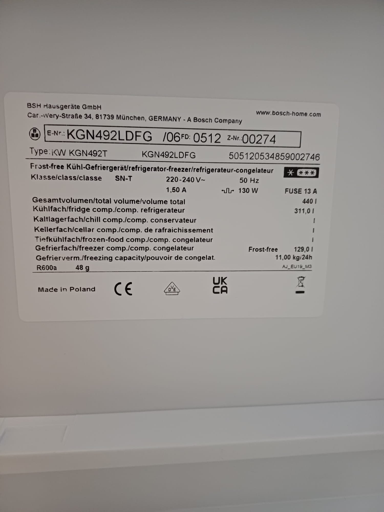 The BOSCH Series 4 KGN492LDFG is a freestanding 70/30 fridge freezer designed for households that need generous storage, practical organisation and low-maintenance cooling.