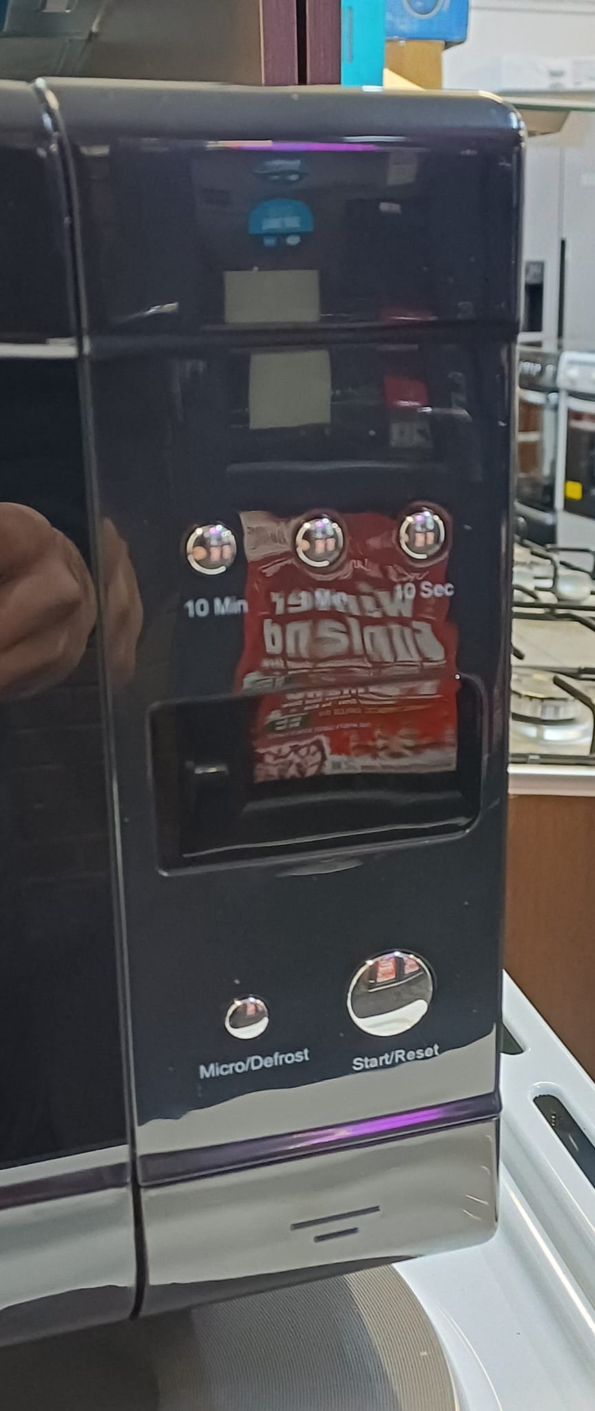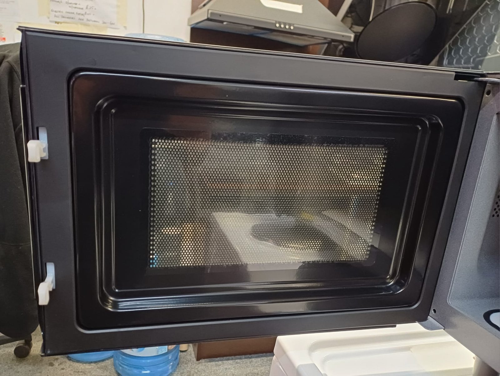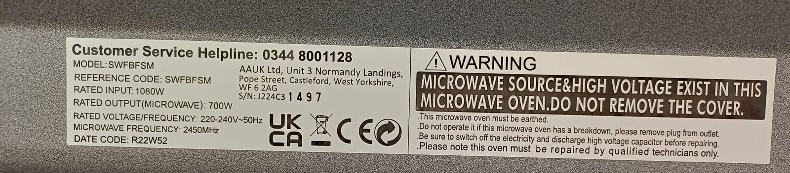 20L capacity • 700W power output • Flatbed design (no turntable) • Green LED display • Push-button door release • Defrost & Quick Start programmes • 13amp plug in