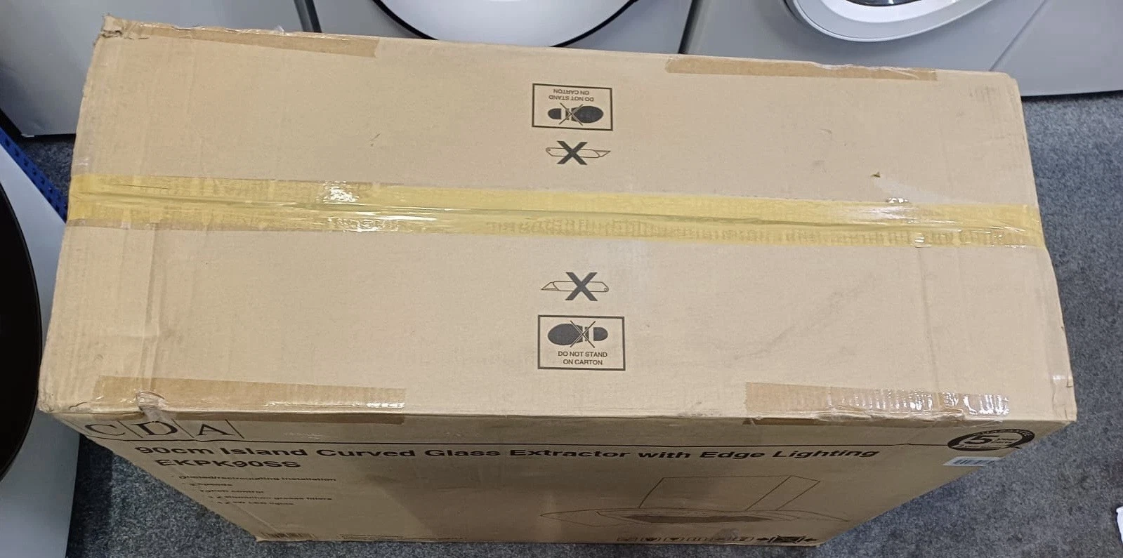 | Box contents | CDA EKPK90SS Island Extractor • Aluminium grease filter • Chimney sections • Fixing kit • User manual • Energy label |
