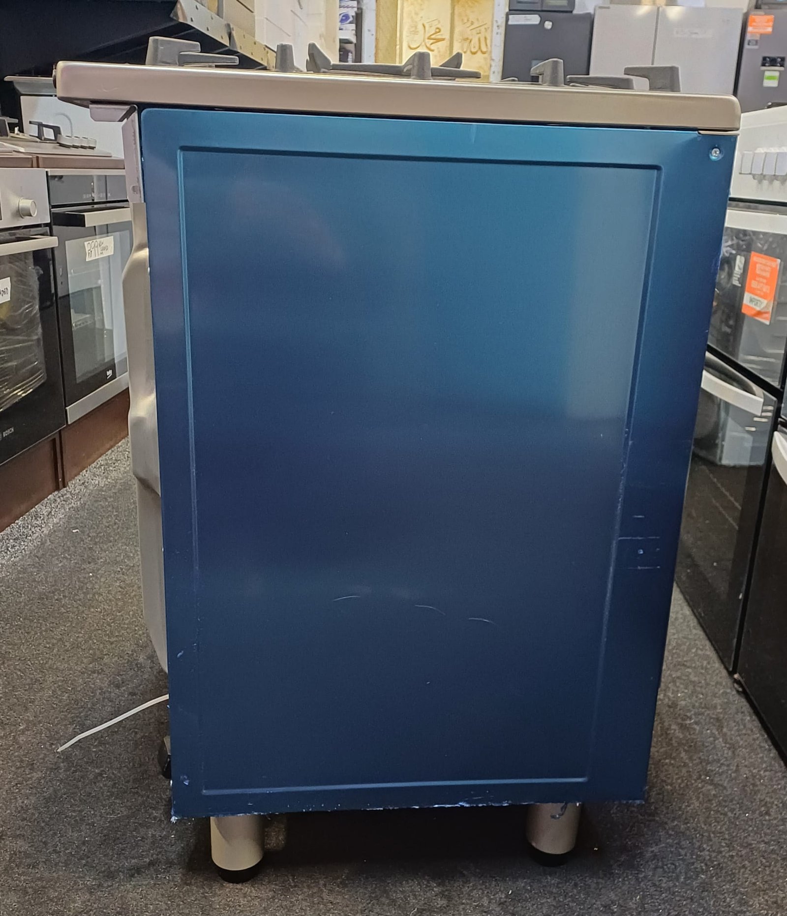 combining a powerful gas hob with a spacious gas oven and thermostatic electric grill. On top, the stainless steel gas hob features five burners, including a double crown wok burner, auto ignition and flame safety devices on all burners, plus robust cast-iron pan supports and a cast-iron wok stand. The large 106 L main oven is perfect for roasts and batch cooking, with interior halogen lighting, a 60-minute minder timer and a drop-down door.