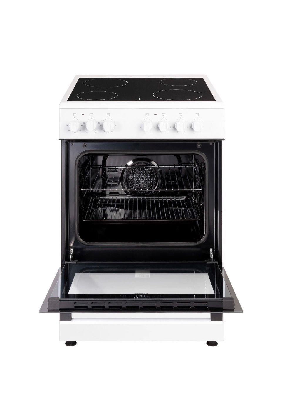 66 L capacity fan oven • Built-in grill • 4-ring ceramic hob • Built-in timer • Interior oven light • Double glazed door • A rated • 7.215 kW