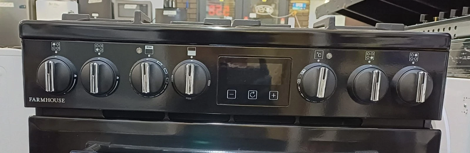 - Dual fuel cooker combining gas hob cooking with electric oven performance.