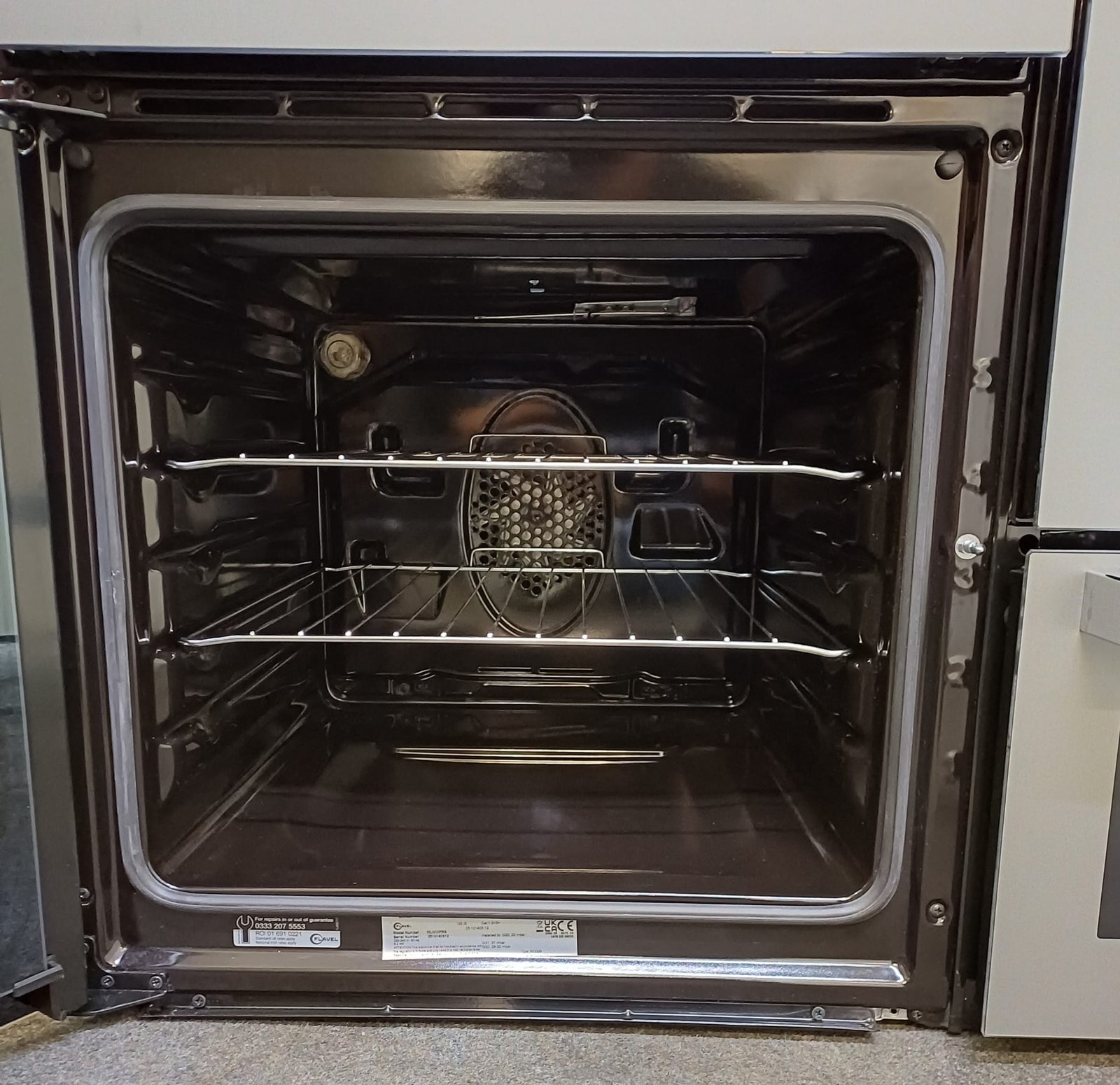 Both ovens offer a generous 58-litre capacity, making it ideal for preparing larger meals or cooking different dishes at the same time. The main oven is fan-assisted, while the second oven is