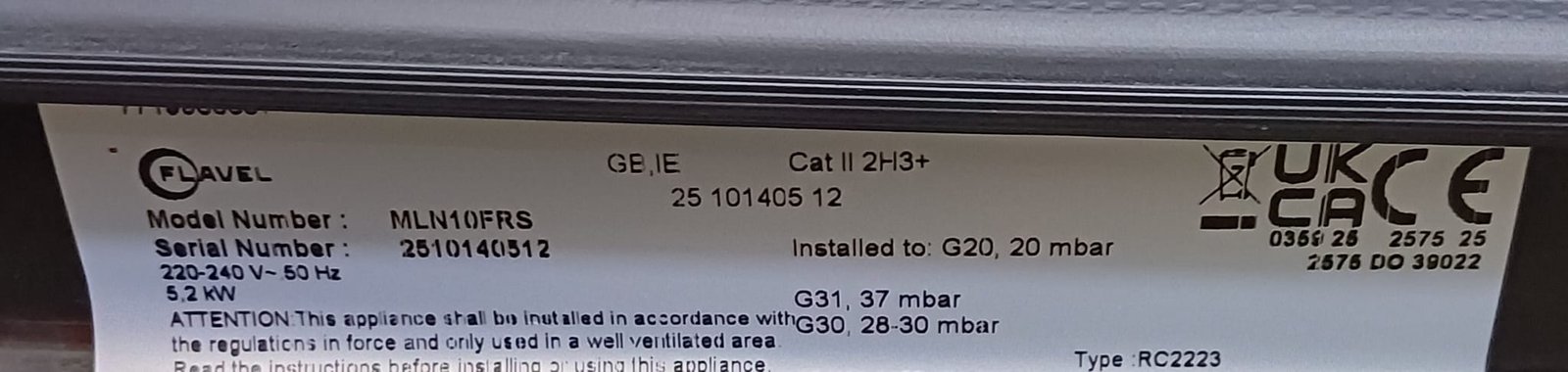 | Hob type | Gas |