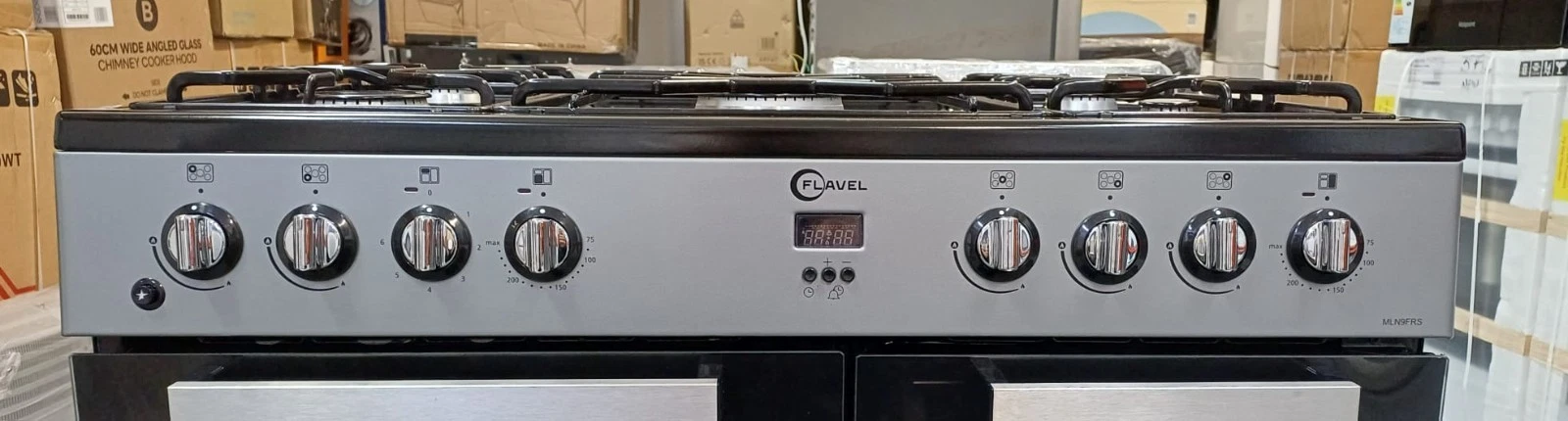 The Flavel MLN9FRS is a versatile 90 cm dual fuel range cooker designed for busy family kitchens.