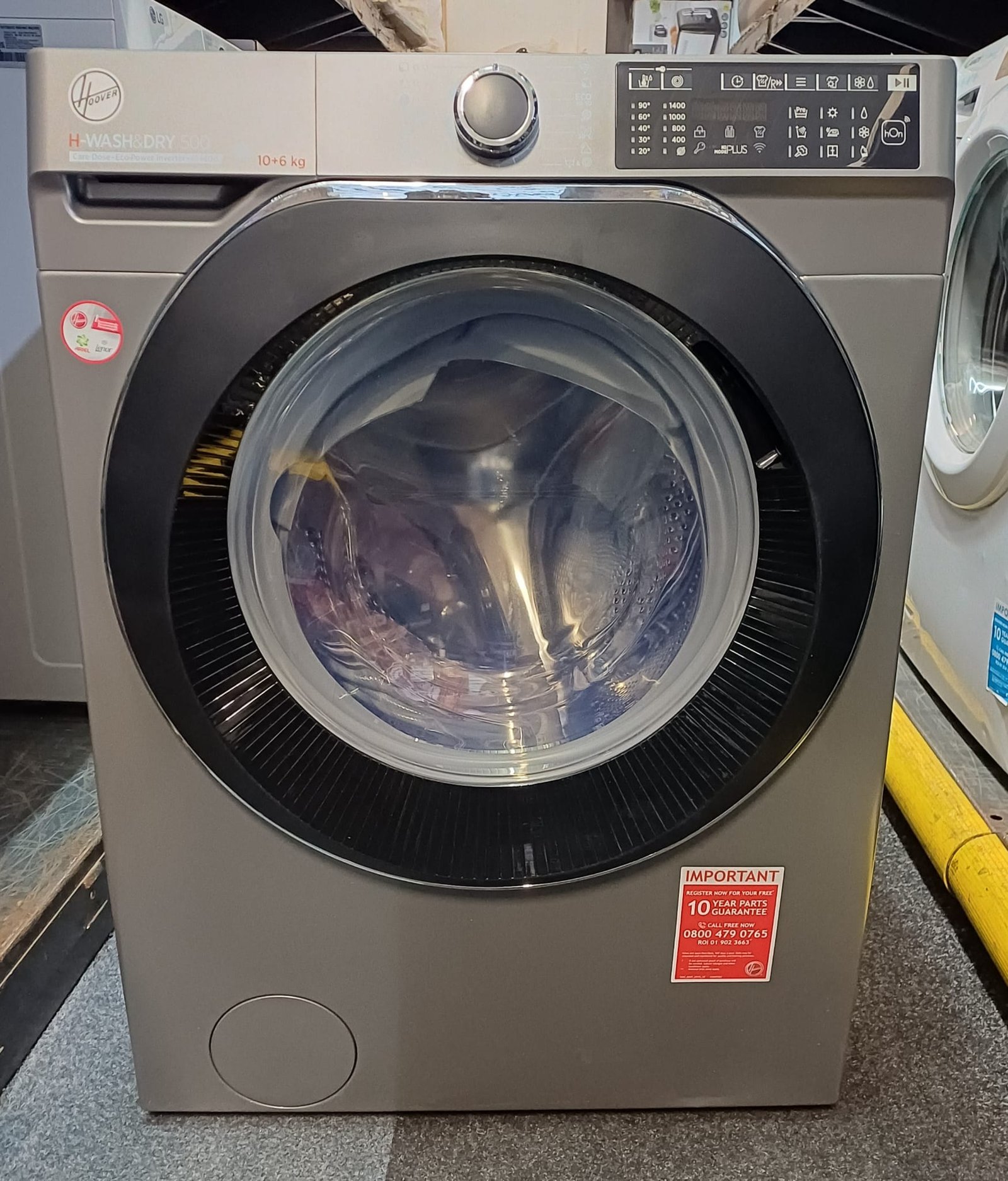 | Box contents | Hoover H-Wash 500 HDB 4106AMC WiFi-enabled 10 kg Washer Dryer • Instruction Manual • Registration Pack |