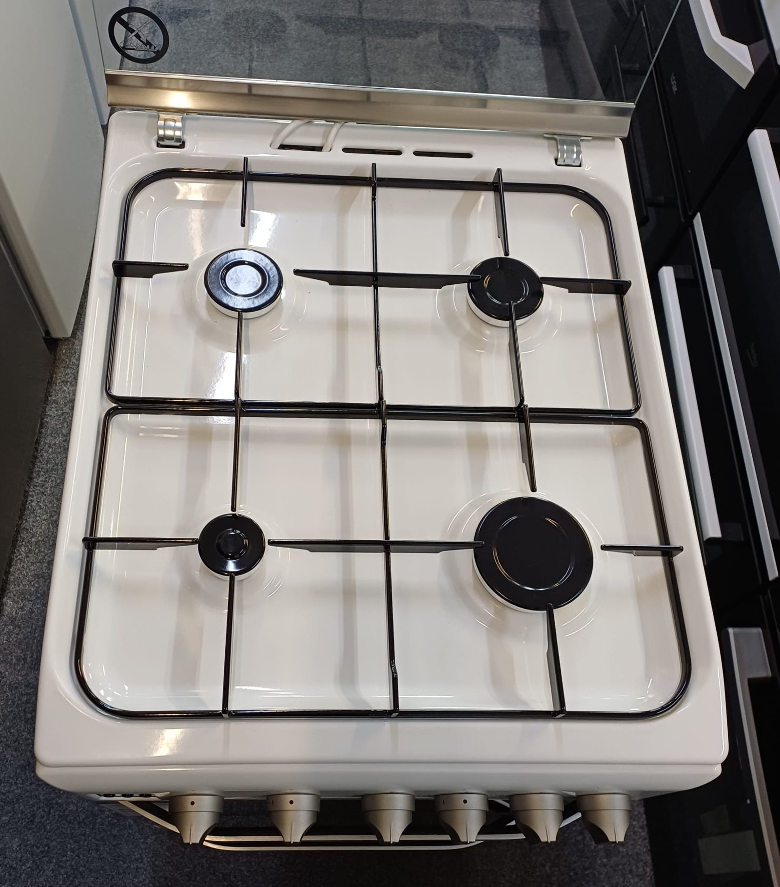 - 50 cm freestanding gas cooker in white, ideal for compact kitchens without compromising on cooking space.