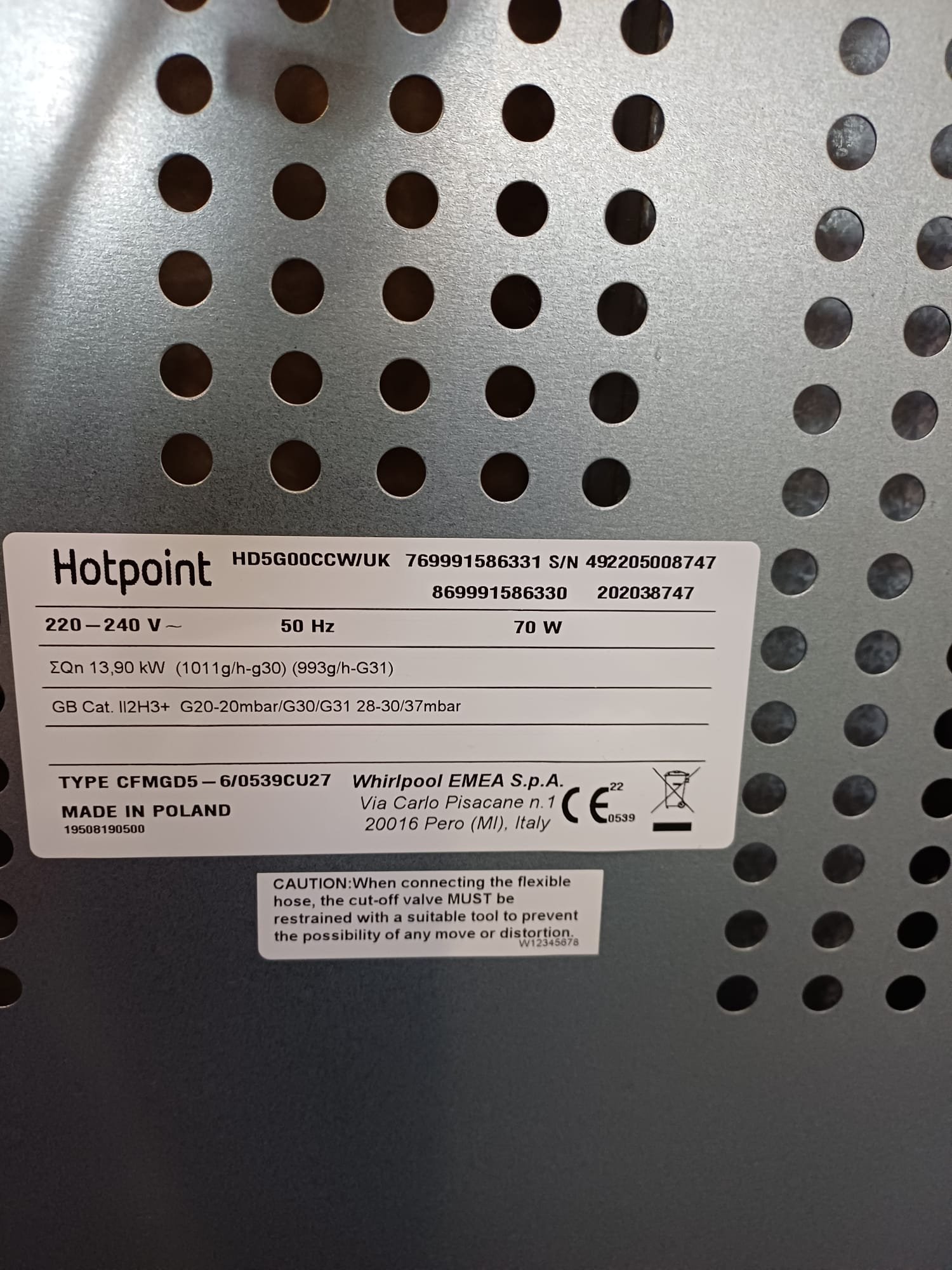 | Box contents | Hotpoint Multiflow HD5G00CCW/UK 50 cm Gas Cooker |