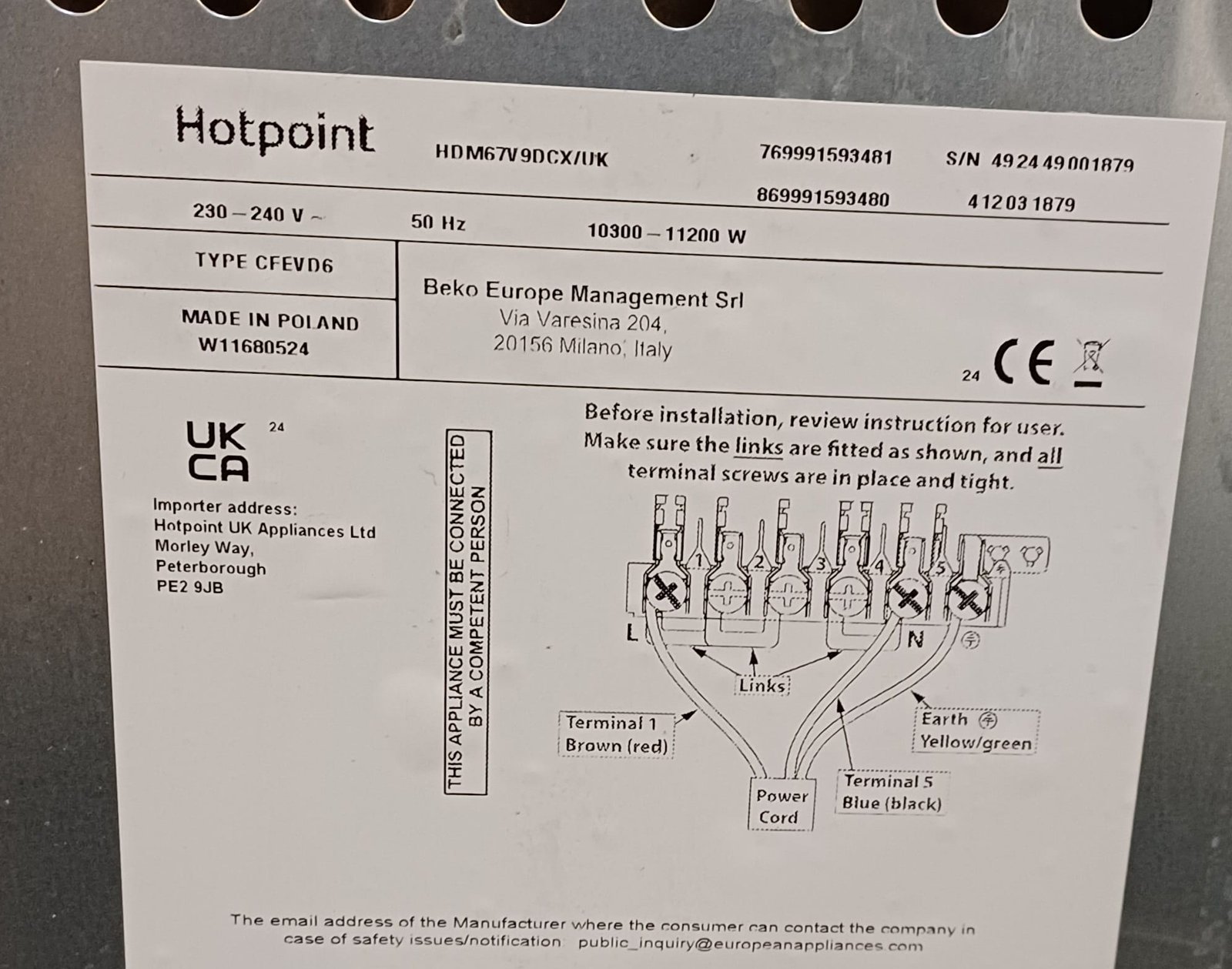 Box contents Hotpoint HDM67V9DC/UK Cooker