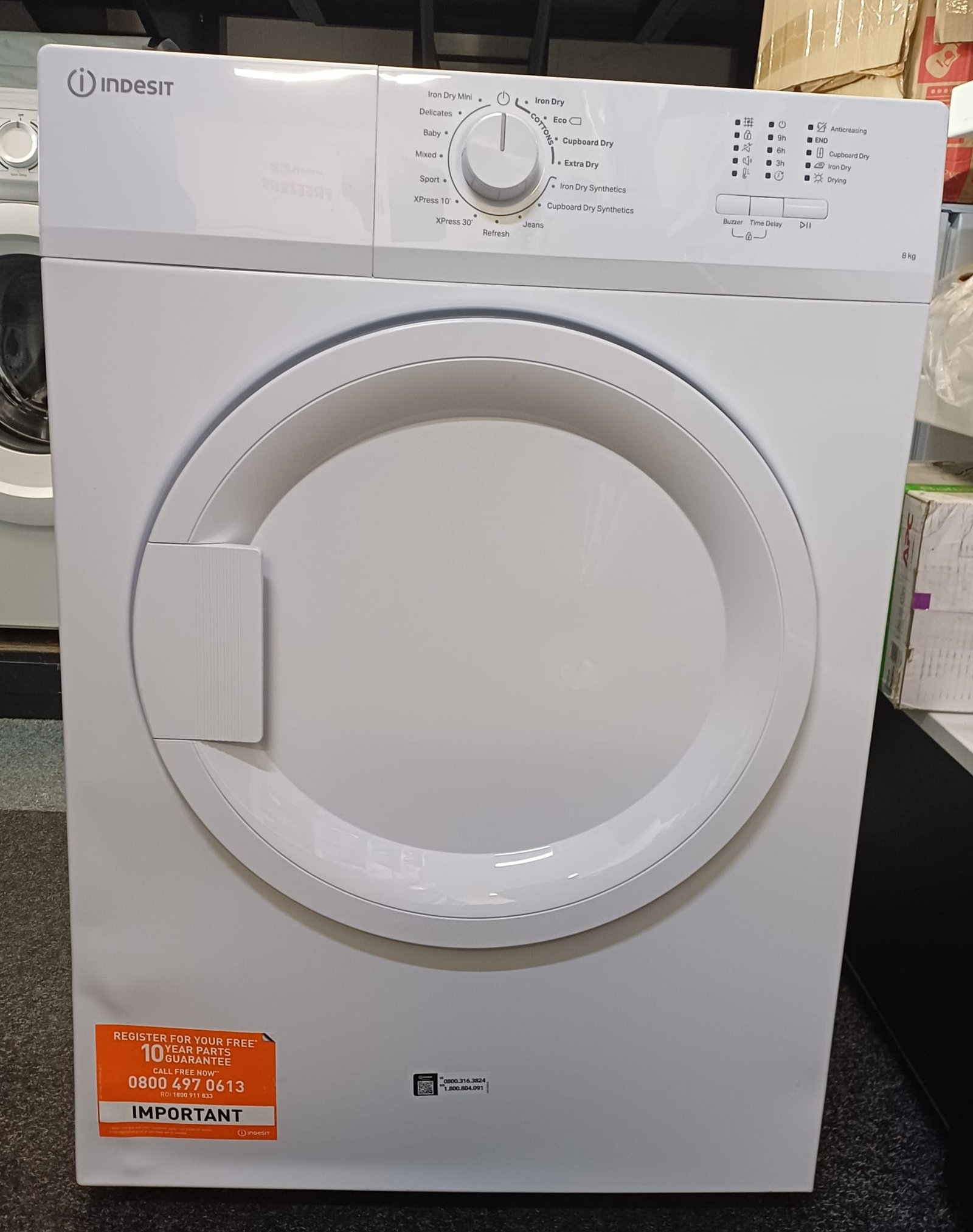 8 kg capacity • Vented drying system • Timed drying programmes • Reverse tumble action • Easy-to-use dial controls • White finish