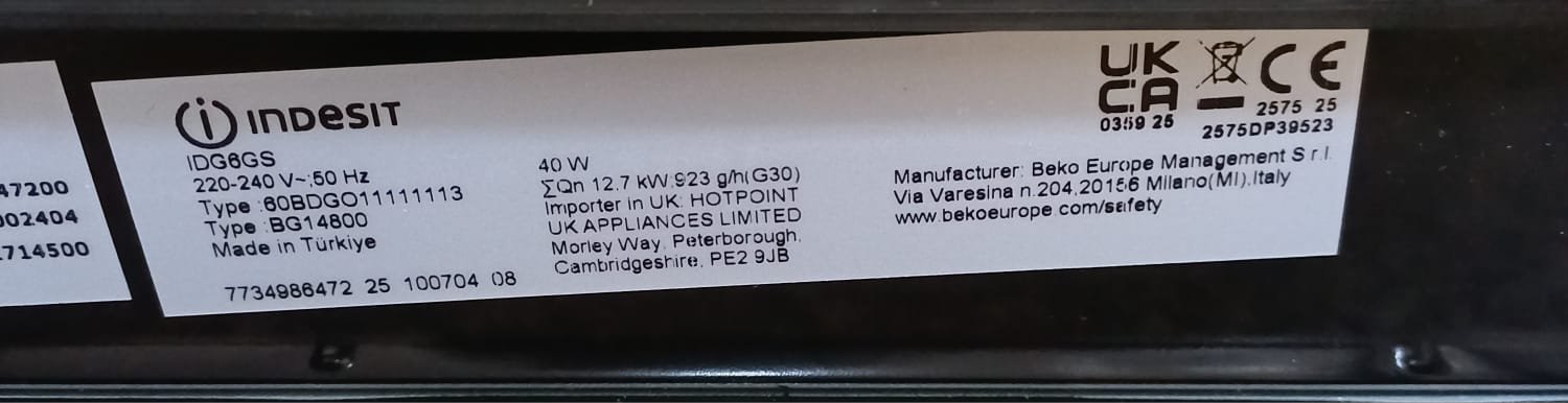 | Box contents | Indesit IDG6GS 60 cm Gas Cooker |