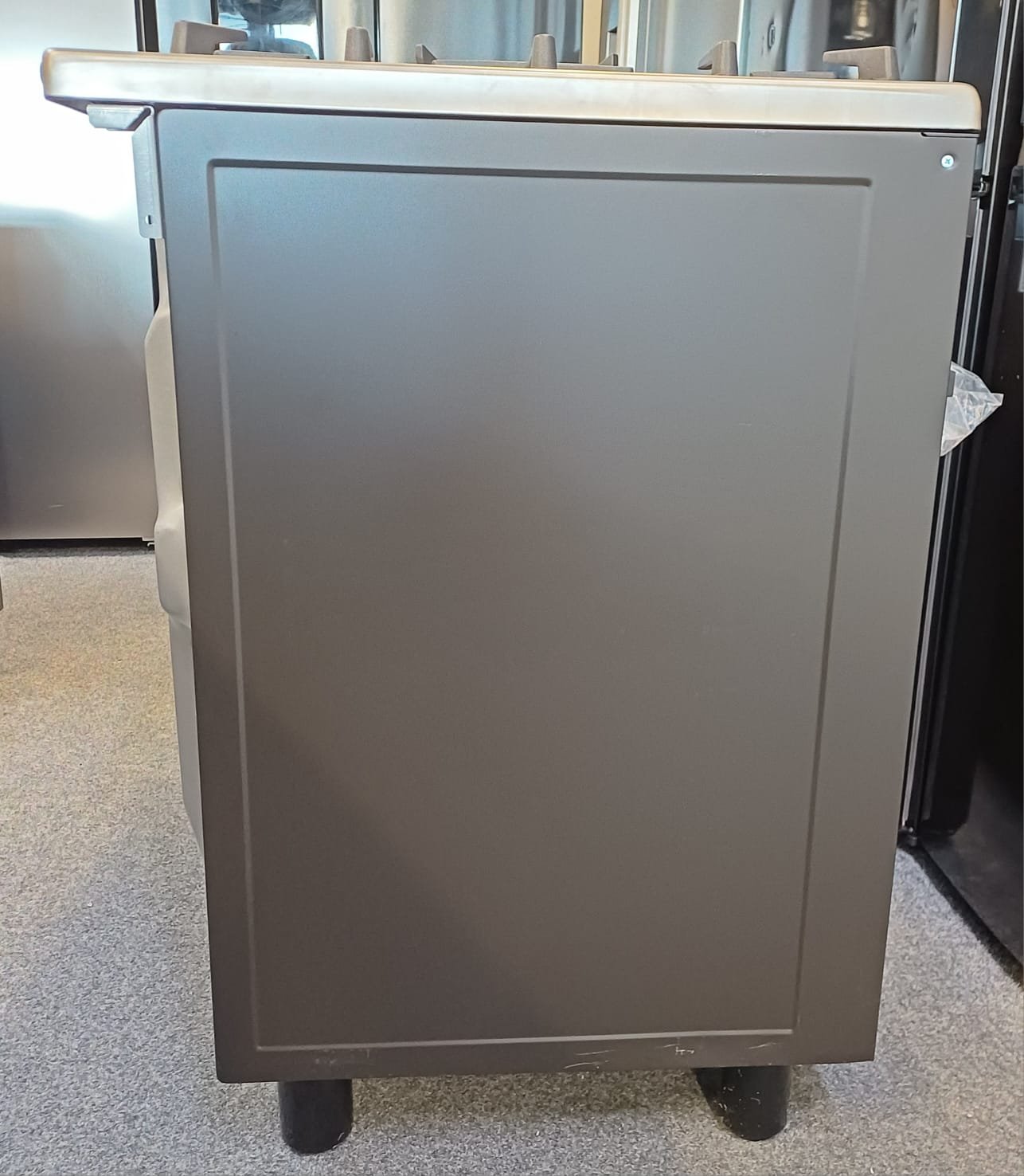 matt black and chrome design, bringing a bold and contemporary look to any kitchen. Built for performance and practicality, it combines a 5-burner gas hob with two electric ovens and a separate grill to give you full flexibility when cooking.