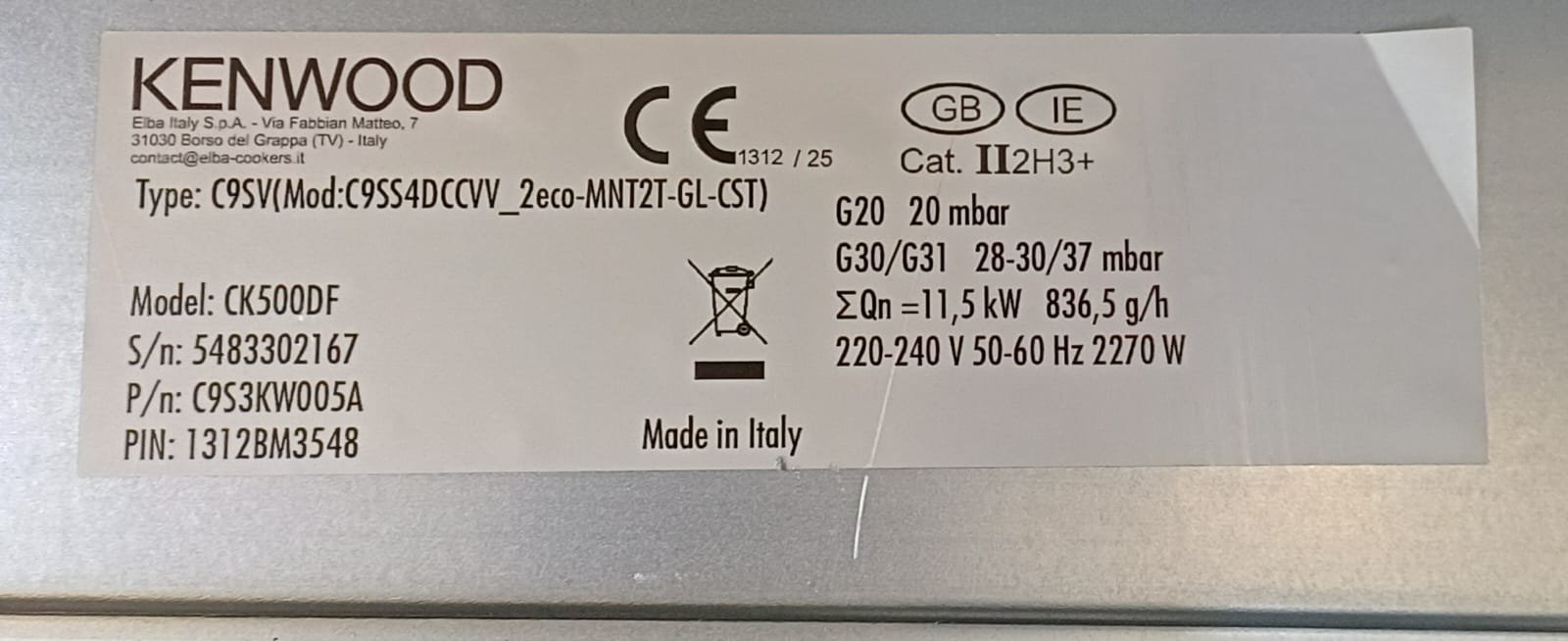 Box contents Kenwood CK500DF Range Cooker • Grill pan • Shelves • User manual • Energy label