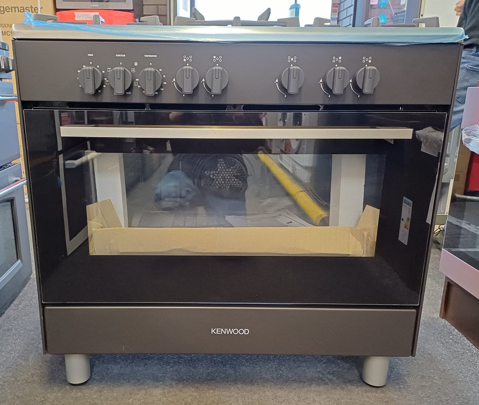 | Box contents | Kenwood CK500DF-SL 90 cm Dual Fuel Range Cooker • Appliances accessories • User manual • Energy labels • Gas conversion jets kit • Anti-tilt bracket kit • Connection gas kit |