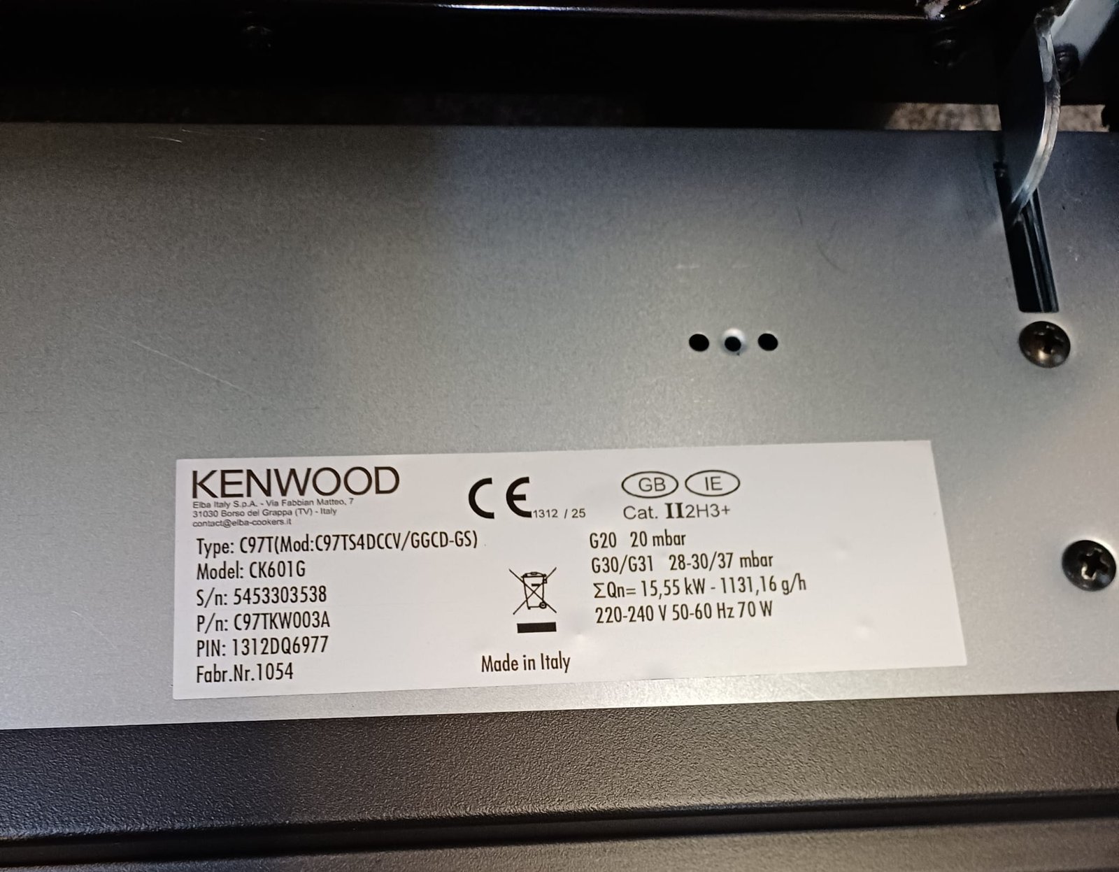 | Box contents | Kenwood CK601G 90 cm Gas Range Cooker • Appliances accessories • User manual • Energy labels • Gas conversion jets kit • Anti-tilt bracket kit • Connection gas kit |