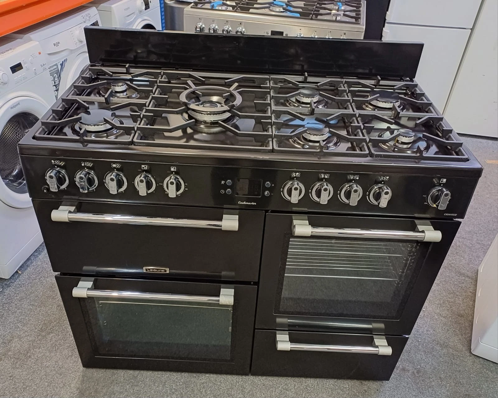 • 110 cm dual fuel range cooker combining an electric oven with a gas hob.