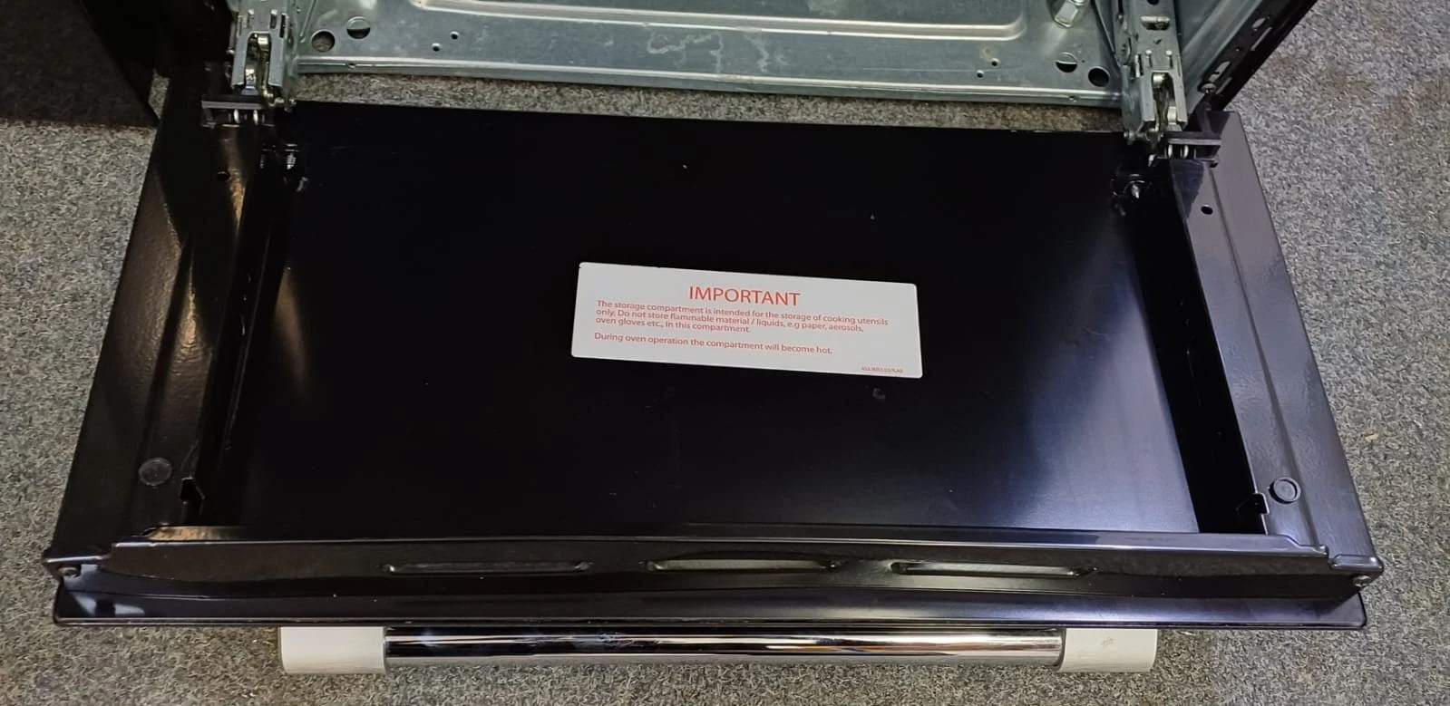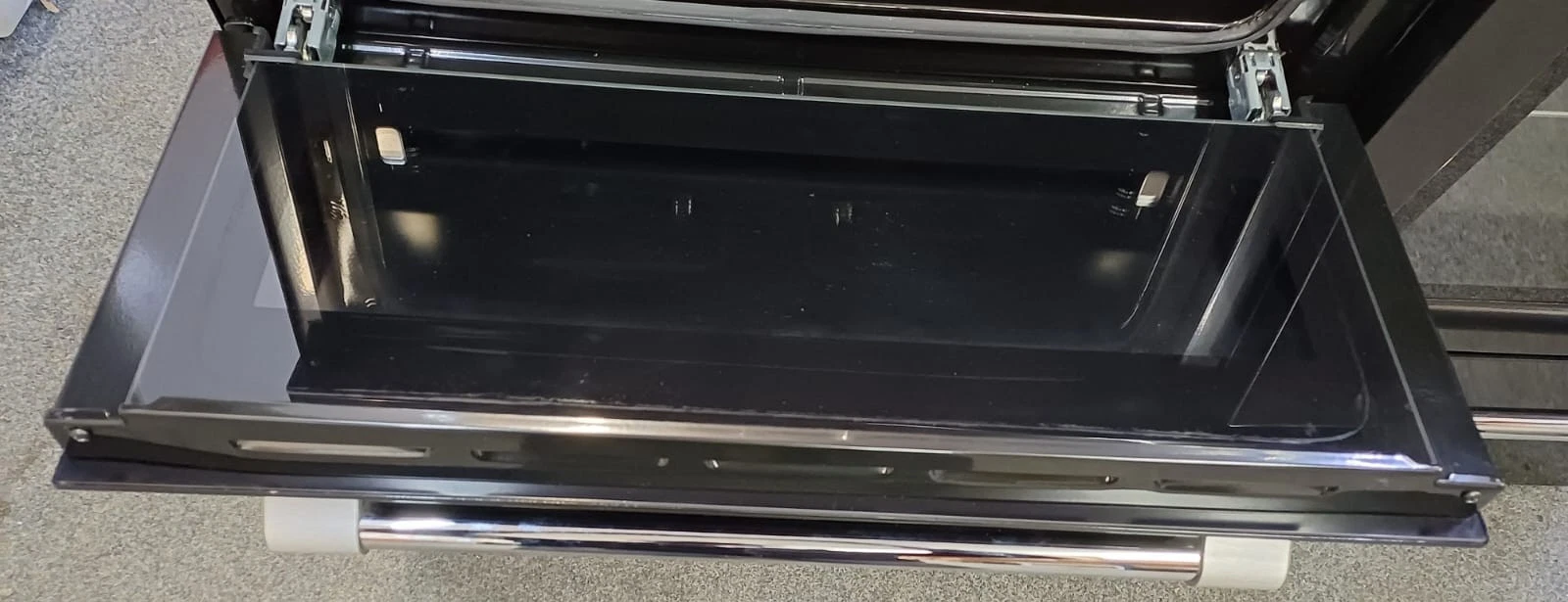 The Leisure Cookmaster CK110F232C is a striking 110 cm dual fuel range cooker finished in black, designed to handle busy family cooking and entertaining. The spacious layout gives you a 7-burner gas hob (including a wok burner) with sturdy cast iron pan supports, and two ovens offering around 140 L total capacity. Helpful touches like catalytic liners and an LED timer make day-to-day cooking simpler, while the storage compartment keeps essentials close at hand.