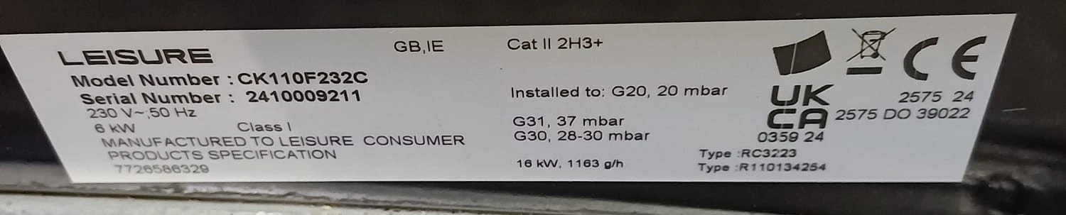 Box contents Leisure Cookmaster CK110F232C Range Cooker • User manual • Warranty/energy information (as supplied)