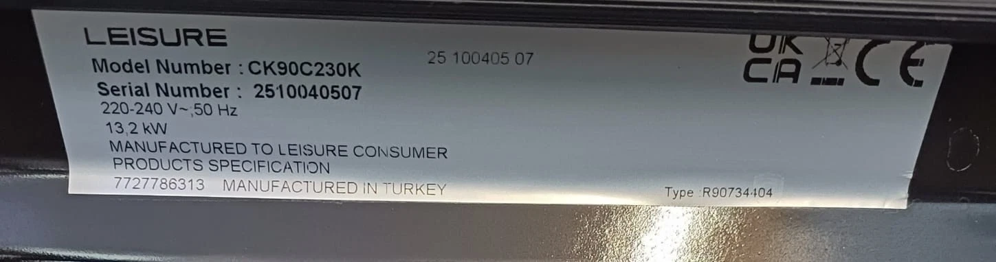| Box contents | Leisure CK90C230K Range Cooker • Oven racks • Grill pan • User manual |