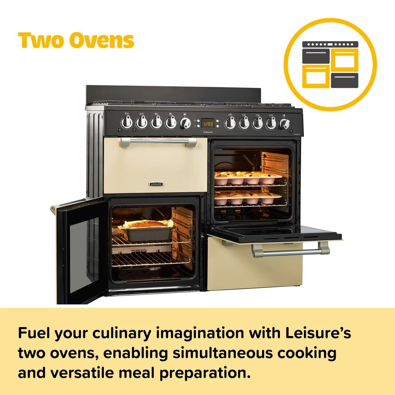 - Two ovens: main gas conventional oven + tall fan oven for flexibility.