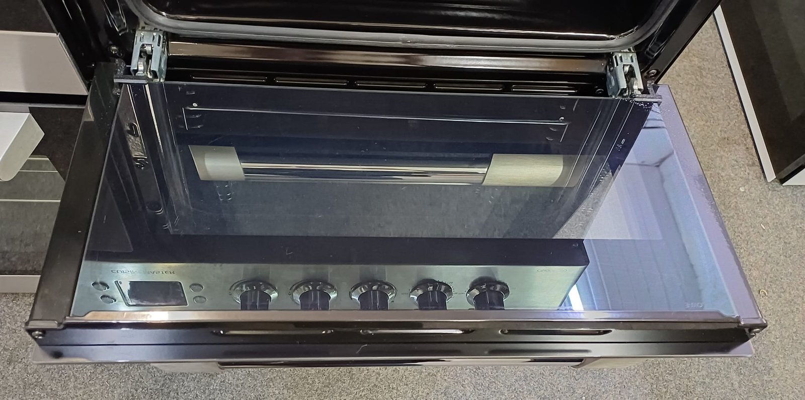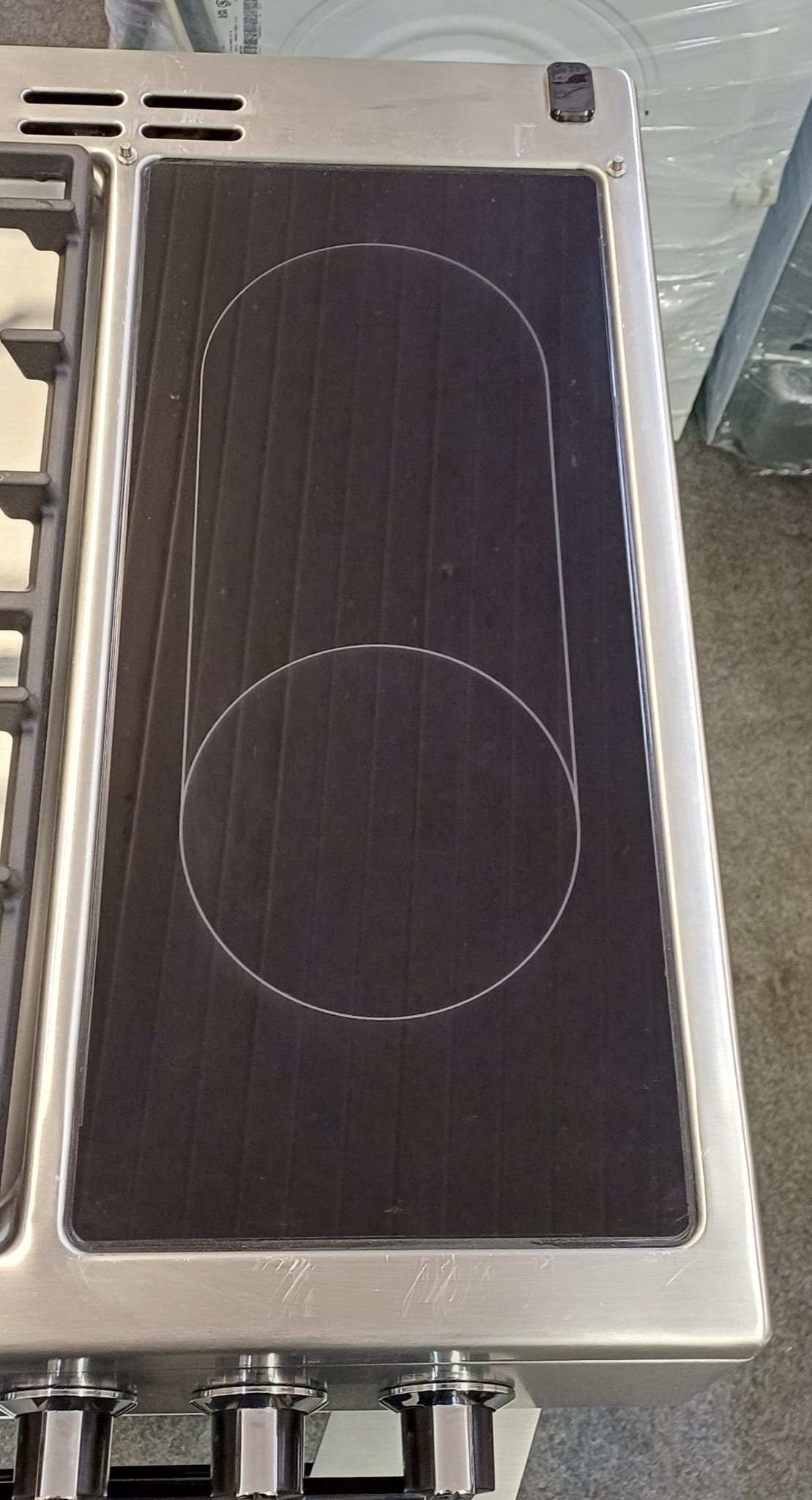 90 x 100 x 60 cm (H x W x D) • Three electric ovens • Separate full-width electric grill • 5-burner gas hob + wok burner • Gas hob with electric ceramic zones • Catalytic liners • Energy rating A