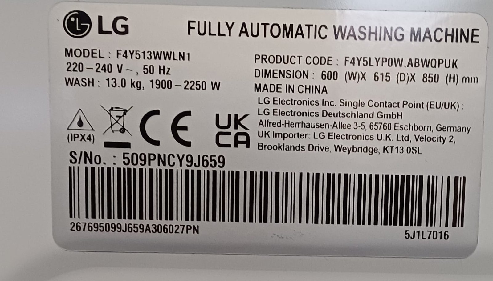 LG 13kg Fully Automatic Washing Machine F4Y513WWLN1 White