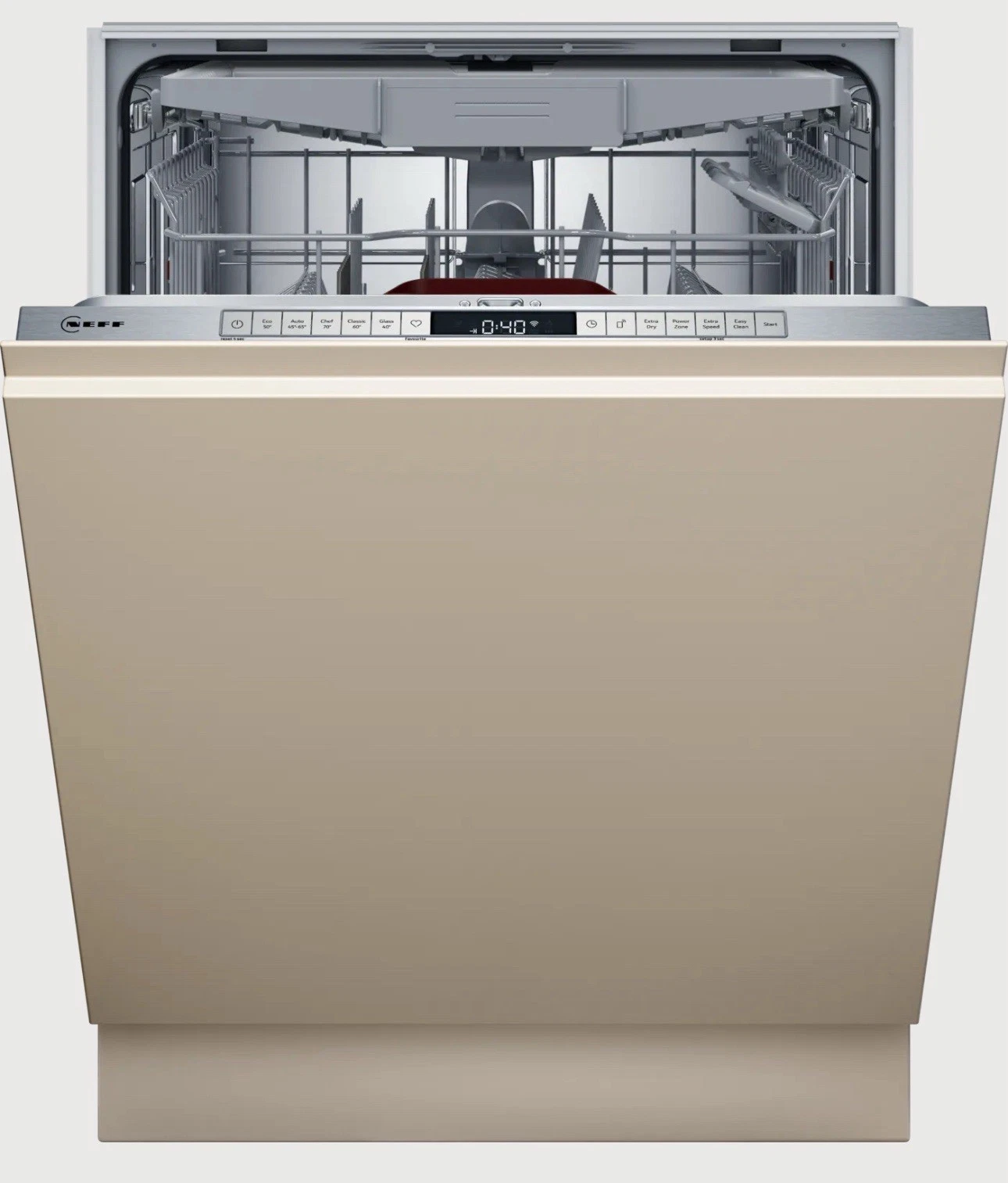 | Box contents | Neff S155HVX00G Fully Integrated Dishwasher • Inlet & outlet hoses • Steam protection strip • Mounting / fixing kit • User manual • Energy label |