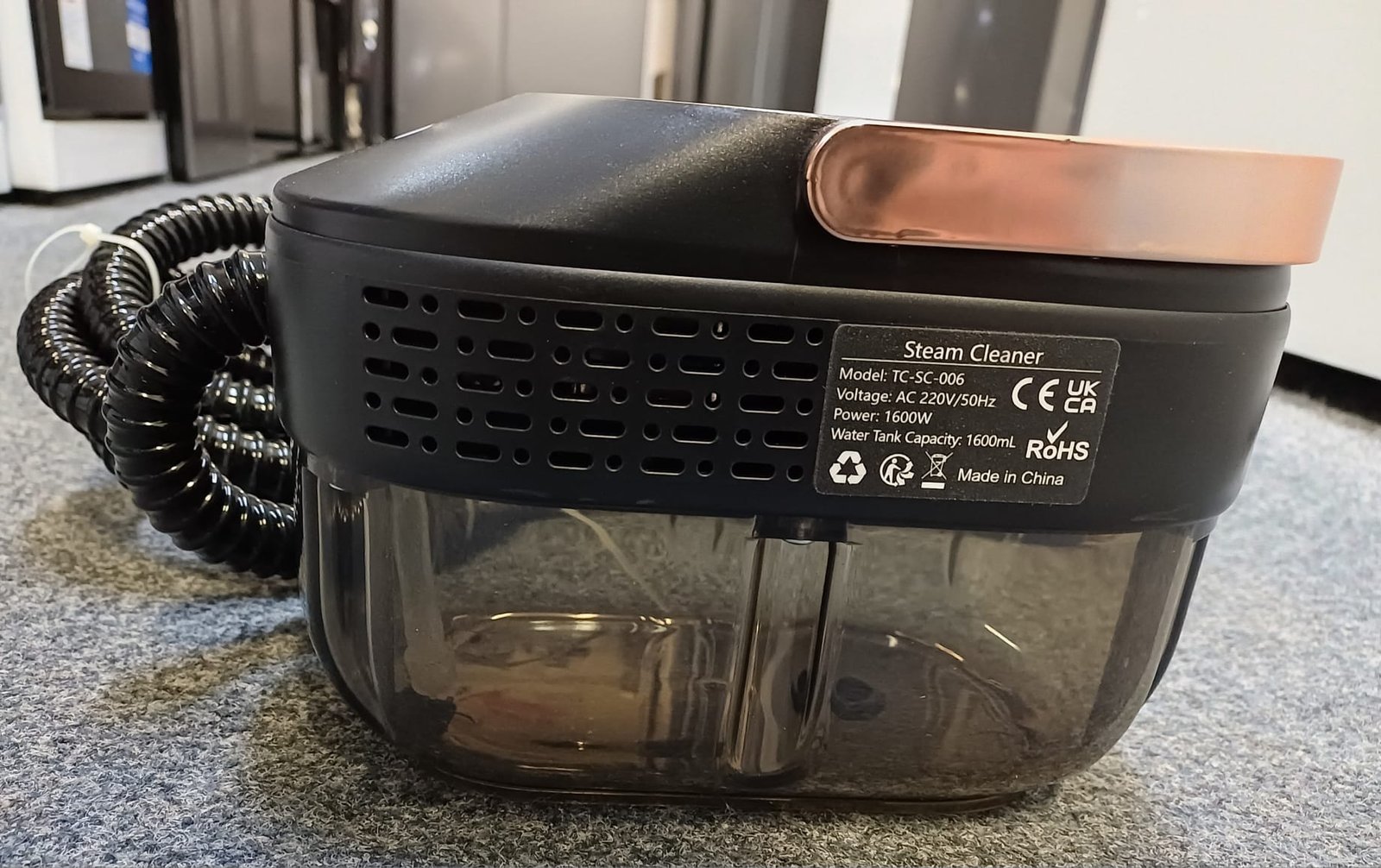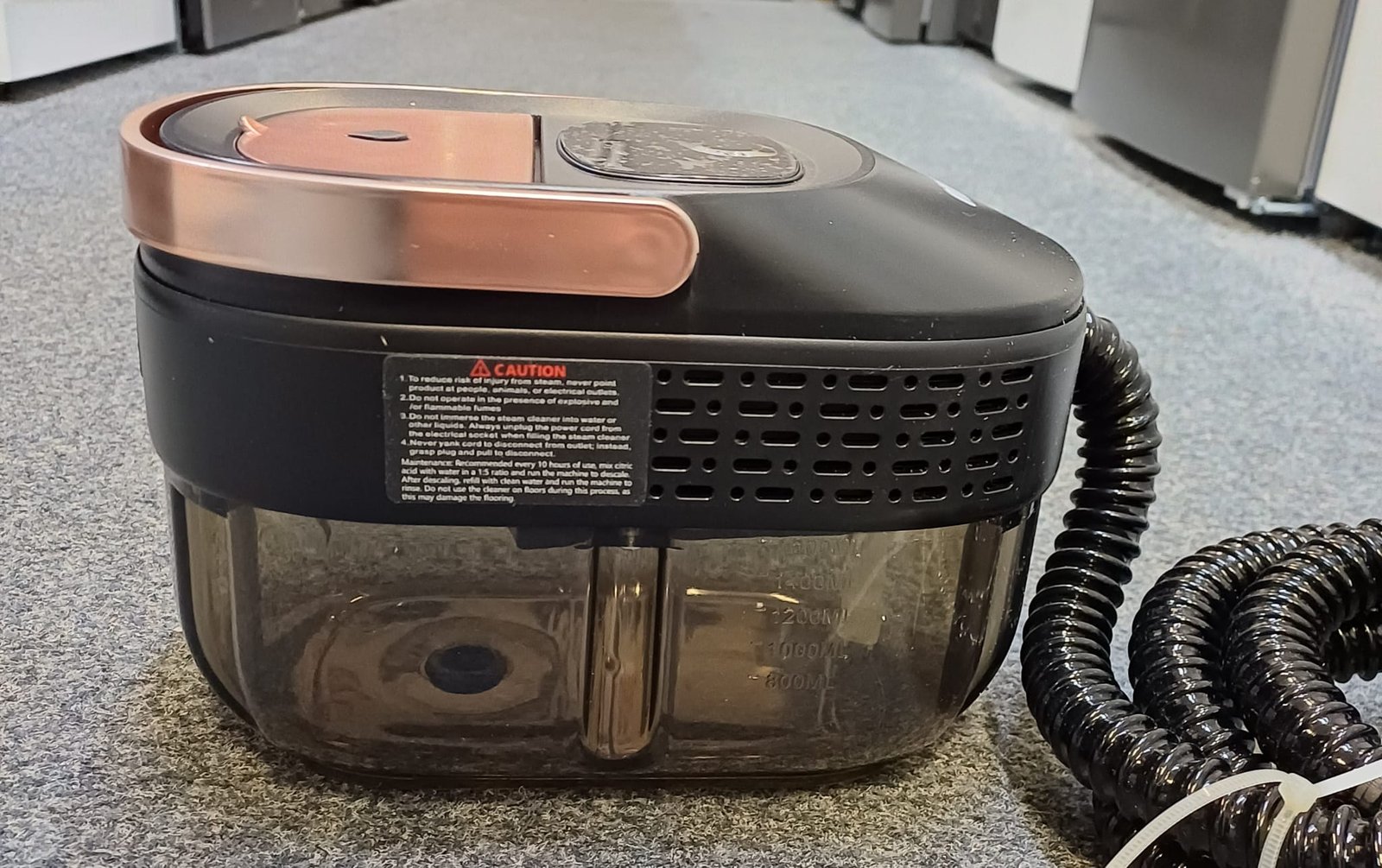 • 1500W steam cleaner designed for portable handheld use.
