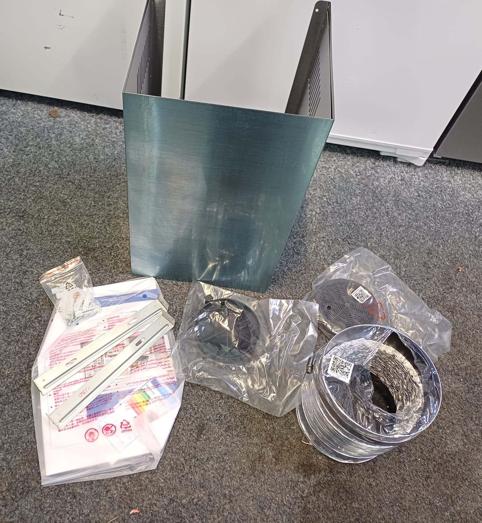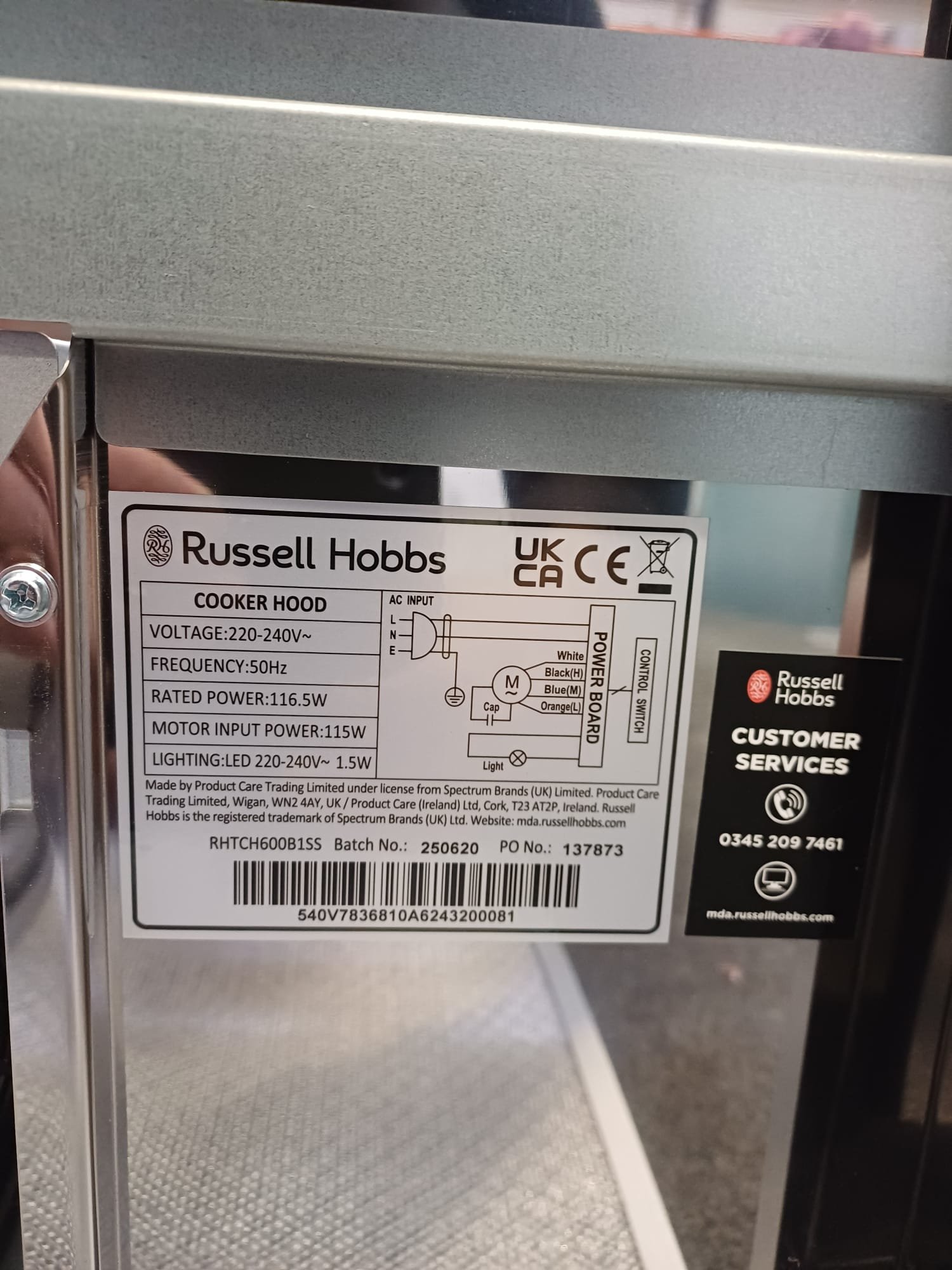 | Box contents | Main unit • Chimney sections • 2 × washable aluminium grease filters • Fixing kit (as supplied) • User manual (as supplied) |