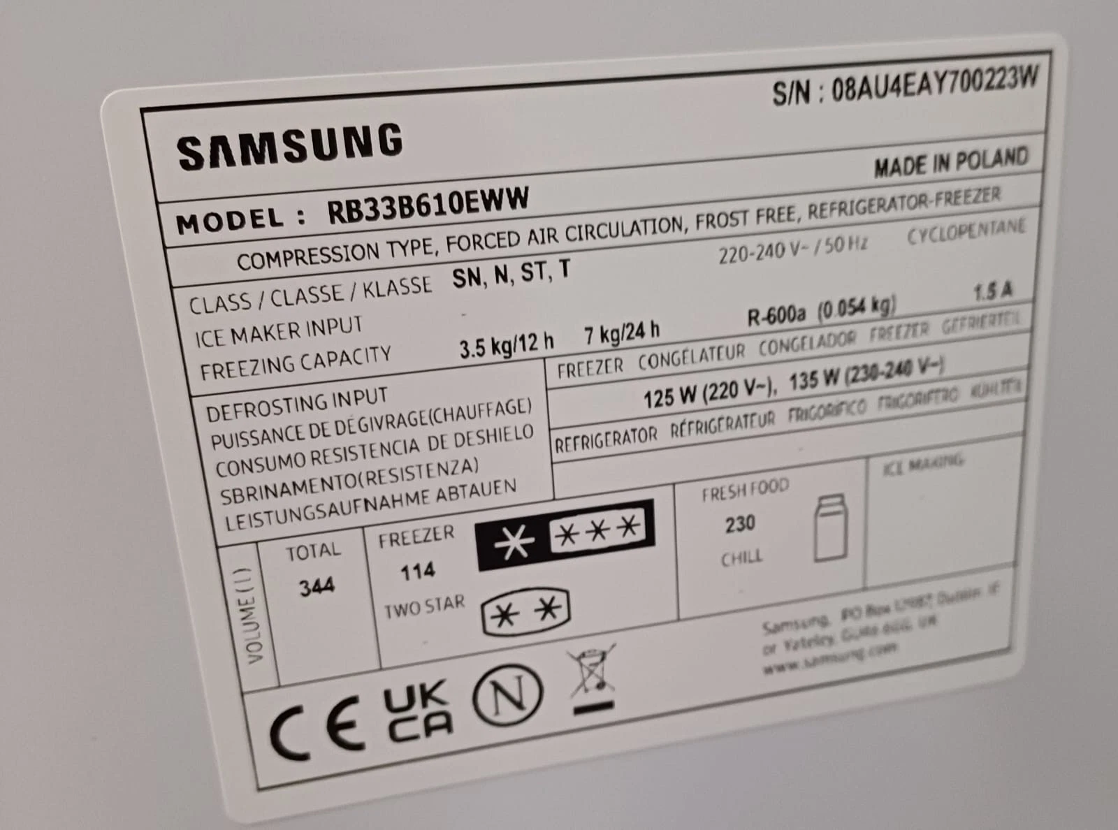 | Brand / model | Samsung Series 5 SpaceMax RB33B610EWW/EU |