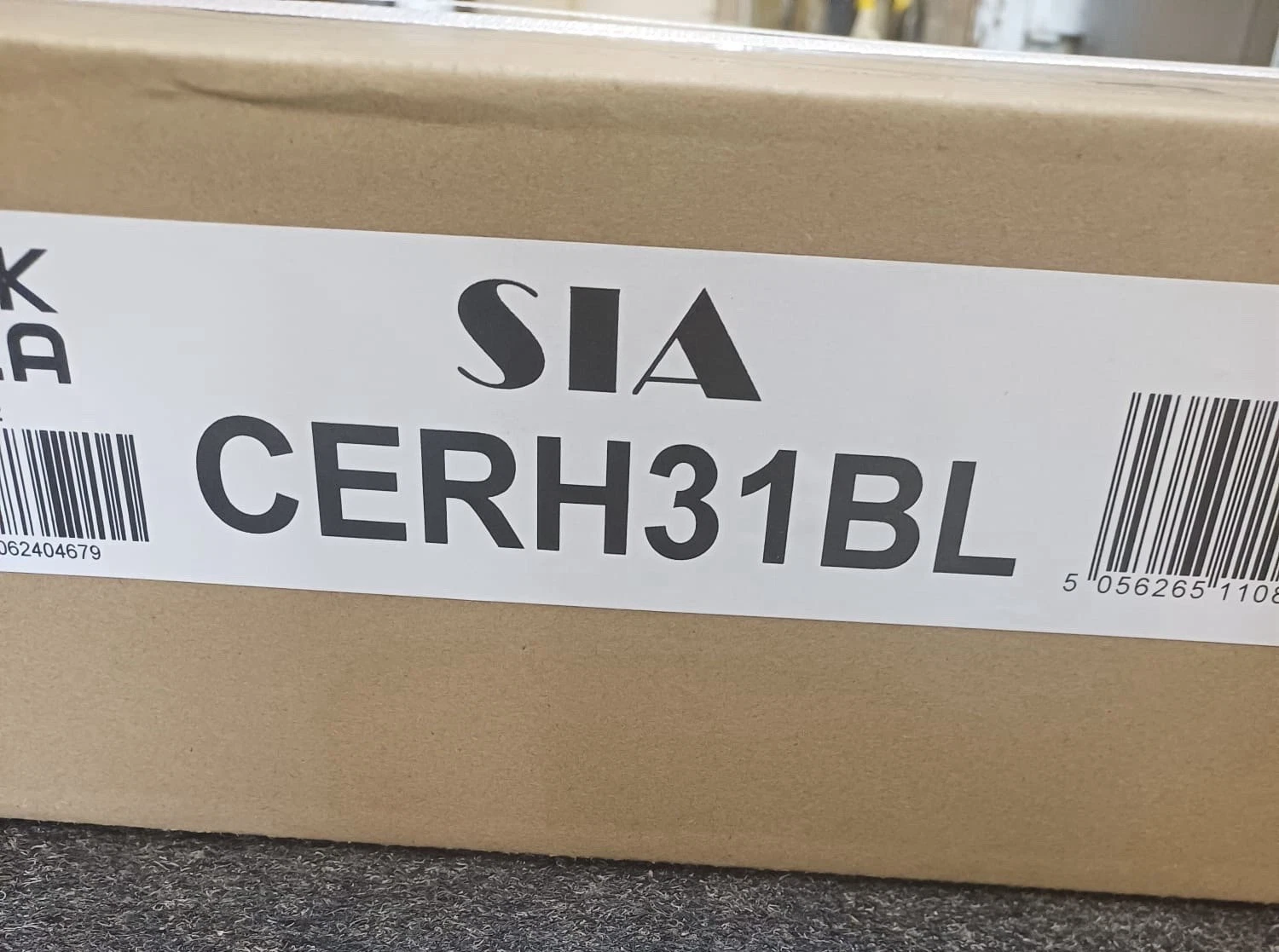 | Box contents | SIA CERH31BL ceramic hob • Fixing kit / brackets • User manual • Installation instructions |