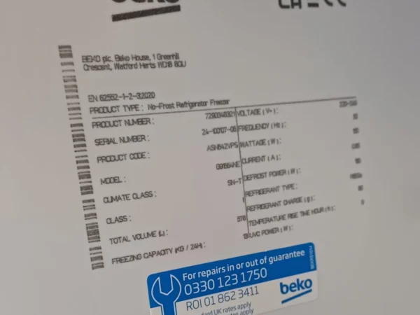 | Cooling technology | Total no Frost • Metal back panel with multi Airflow system |