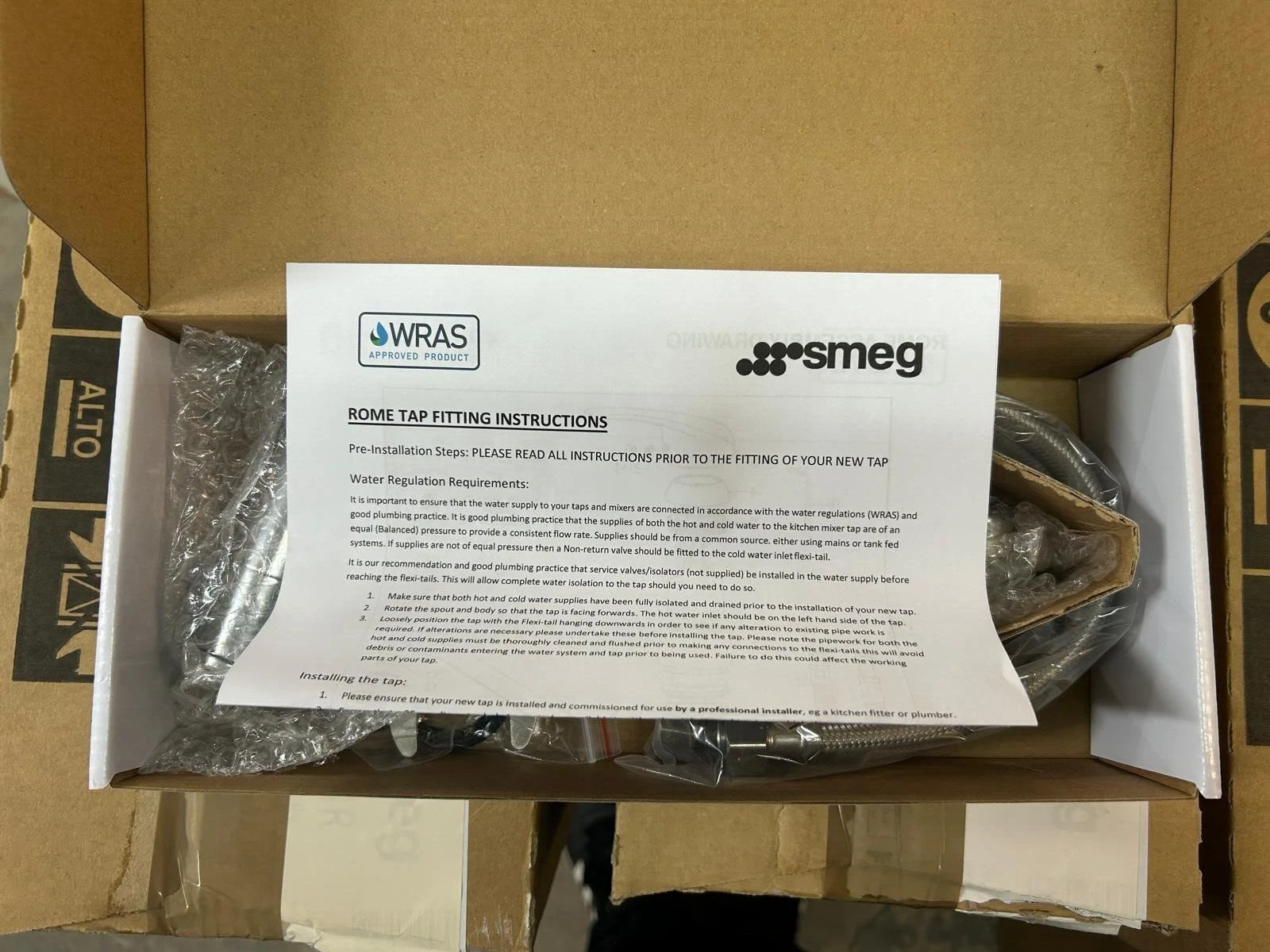 The Smeg Rome Single Lever Top Chrome Mixer Kitchen Tap is a practical and stylish addition to your kitchen. With its sleek chrome finish and simple, single-lever design, this tap makes controlling the water flow and temperature a breeze. Ideal for modern kitchens, it provides both functionality and aesthetic appeal, making it a perfect fit for any kitchen sink.