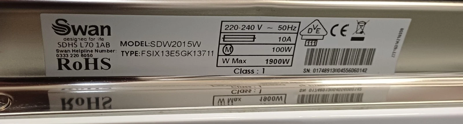 | Brand / Model | Swan • SDW2015W |