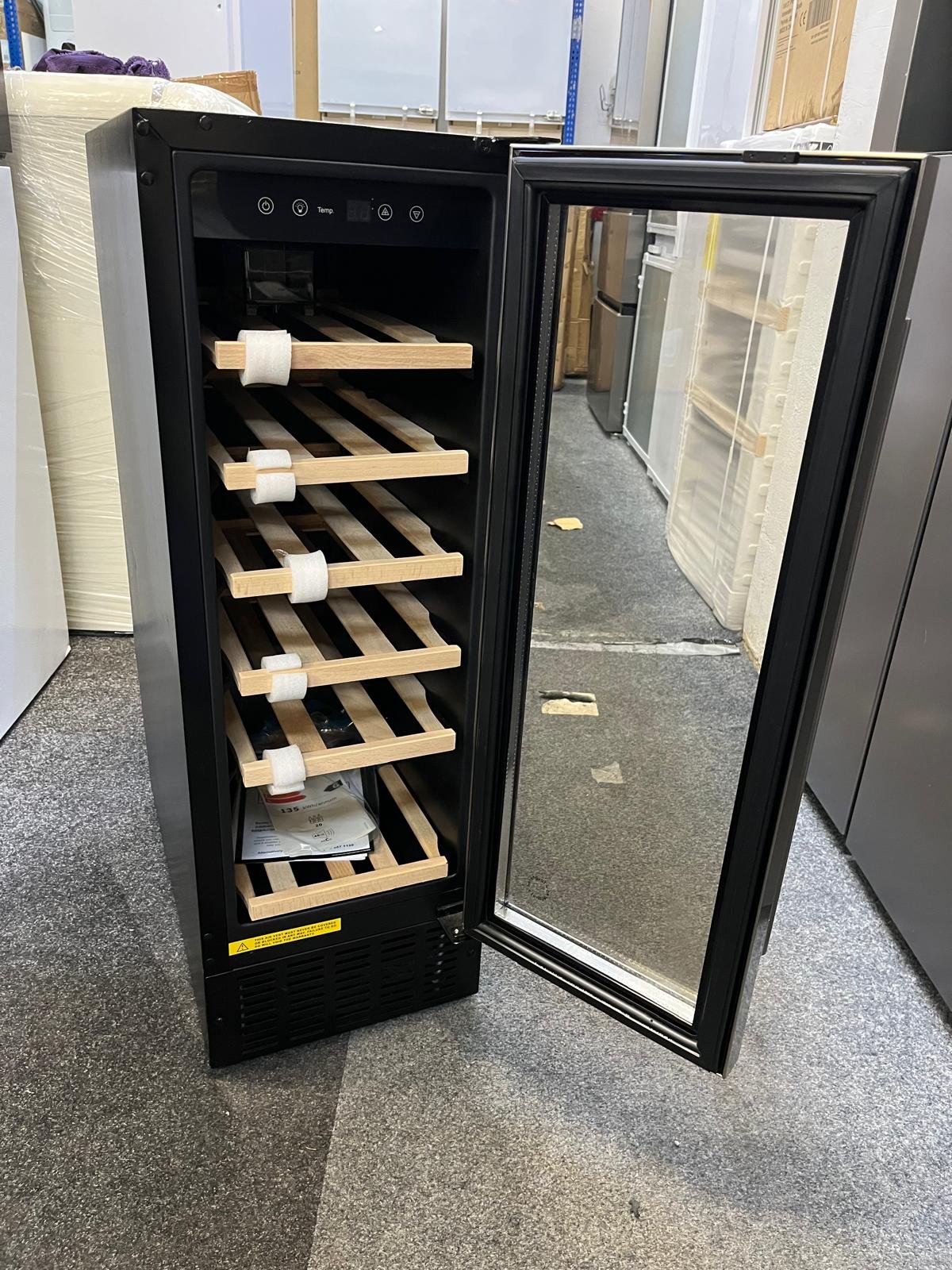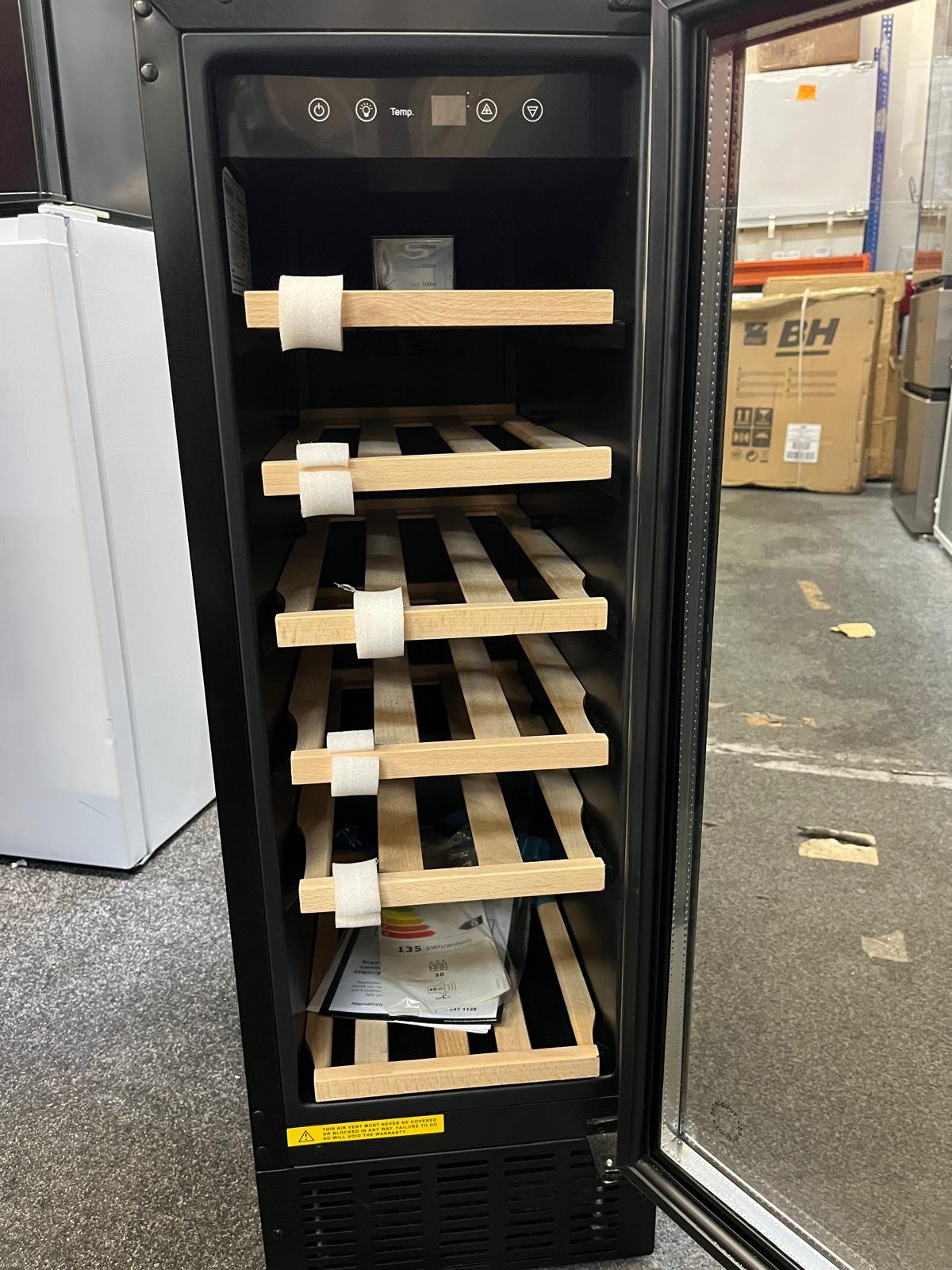- 30 cm under-counter wine cooler designed to fit neatly beneath your worktop.