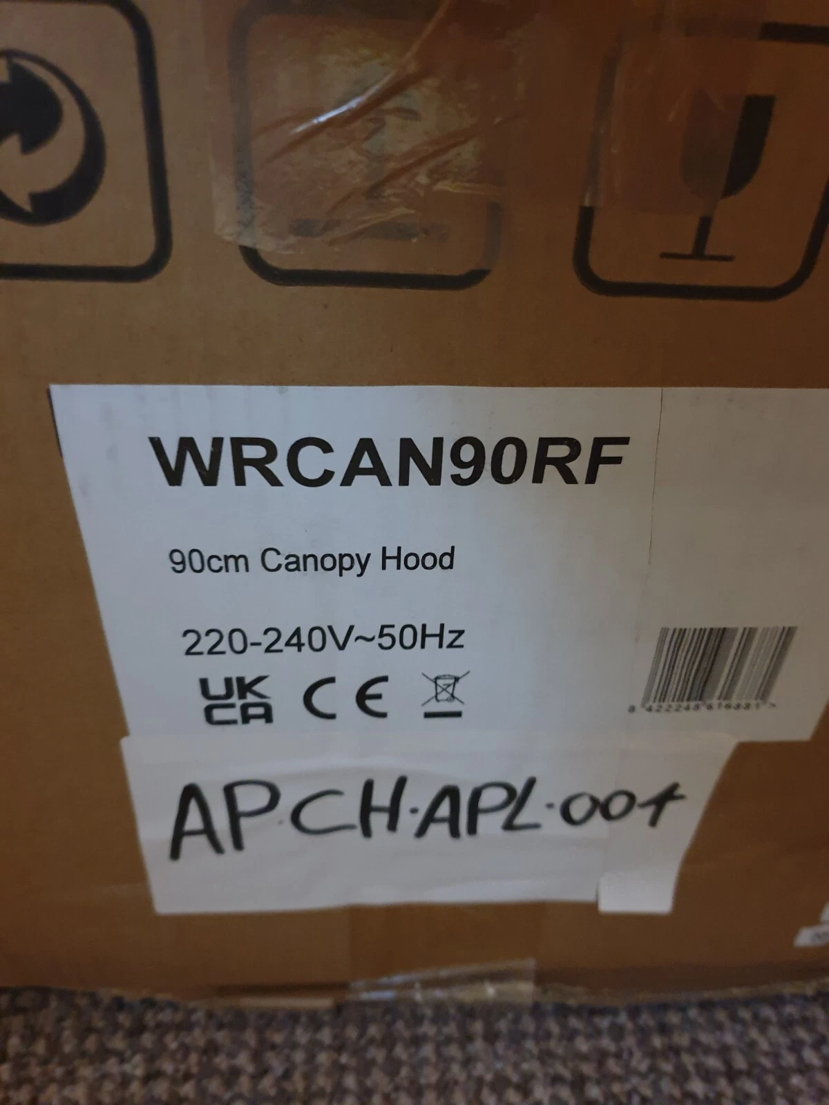 Viceroy Stainless Glass CDA WRCAN90RF Canopy Cooker Kitchen Extractor Hood