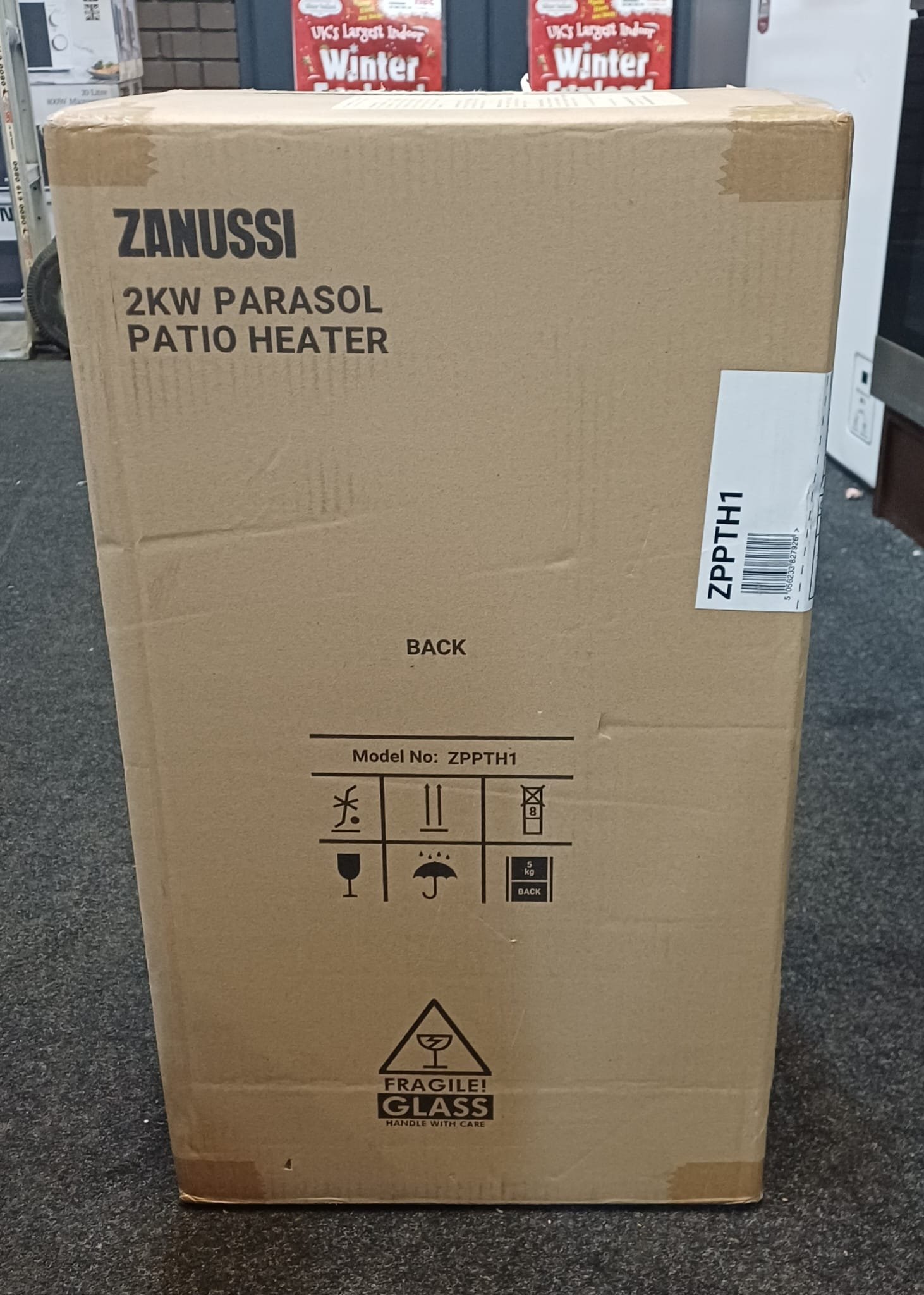 | Box contents | Zanussi ZPPTH1 Parasol Patio Heater • Fixings • User manual |